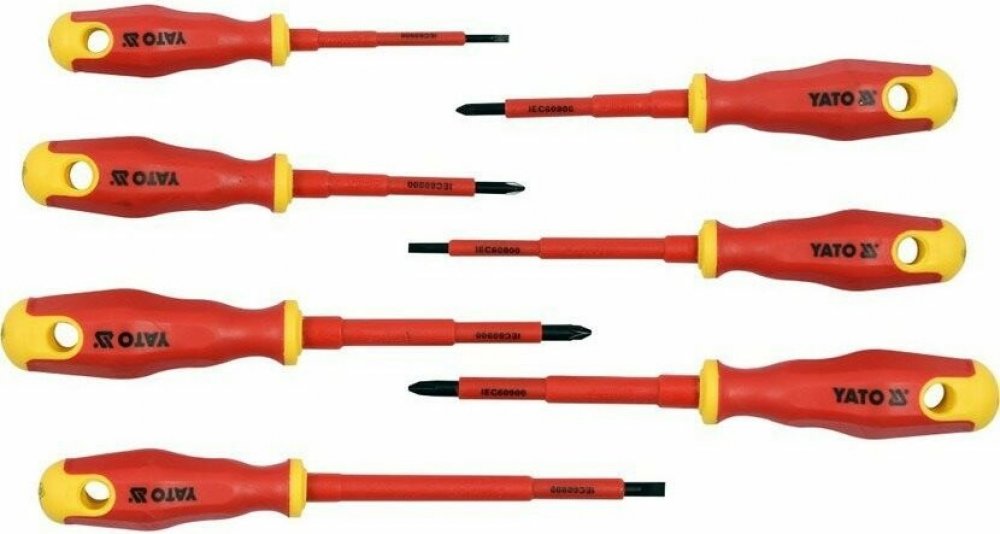 Praktická sada YATO obsahuje až sedm kusů špičkových šroubováků, které jsou určeny především pro profesionální jemné montážní práce. Jsou vyrobeny z velice odolné oceli s kalenými magnetickými hroty, takže se jen tak "nesjedou". Rukojeť je dobře tvarovaná, příjemná na dotek a přesně padne do ruky, což se kladně odráží na komfortu při používání. Pro lepší přehlednost a skladovatelnost jsou uloženy v plastové krabičce, kterou si můžete klidně pověsit na stěnu. Na nic už nečekejte, jelikož za luxusní cenu dostanete opravdu kvalitní kousek, který vydrží dlouhou dobu.Klíčové vlastnosti izolovaných šroubováků 1kV YATO v sadě, YT-2828Kvalitní sada šroubováků za skvělou cenuKalené magnetické hrotyDobře tvarovaná rukojeťUloženo v praktické plastové krabičceObsah balení:Plochý šroubovák: 3 mm, 4 mm, 5,5 mm; křížový šroubovák: PH1, PH2, PZ1, PZ2
