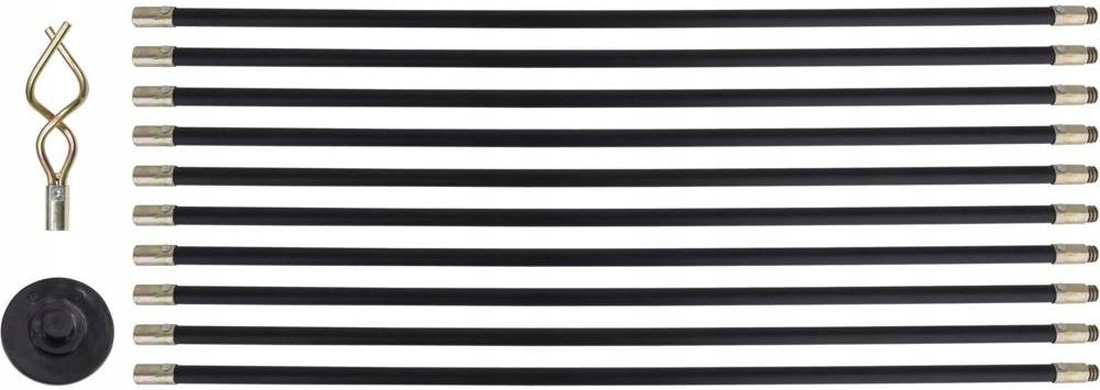 - v sadě: 10 tyčí, kulatý gumový hrot o průměru 10 cm a tloušťce 6 mm zakončený závitem, dvojitý spirálový hrot o délce 16,5 cm a průměru tyče 7 mm zakončený závitem