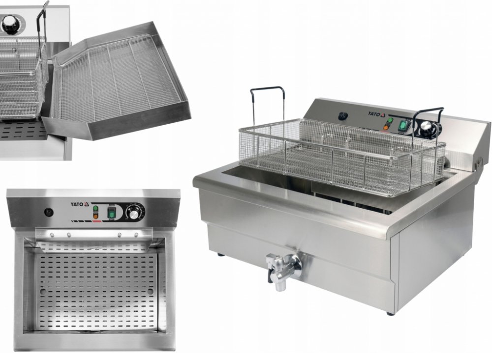 Yato Gastro Fritéza jednokomorová 6000W 26,5l, YG-04641 Jednokomorová fritéza YATO je nezbytným zařízením téměř v každém gastronomickém směru. Je určena ke smažení: koblih masa ryb kroket zeleniny Fritéza je řízena potenciometrem umístěným na ovládacím panelu. Je možné nastavit provozní teplotu v rozmezí 60 ~ 200° C. Instalovaný přepínač je odolný proti stříkající vodě vám umožní vypnout zařízení bez odpojení napájecího kabelu ze sítě. Ovládací panel má navíc ochranný kryt z velmi odolného polykarbonátu, který panel chrání před olejem při smažení. Díky tomu je udržování fritézy v čistotě mnohem snazší. Odnímatelné topné těleso lze zavěsit na speciální držák v poloze, kde kapající olej jde zpět do nádrže. Fritéza má další bezpečnostní zařízení, které automaticky vypne ohřívač, když je vyjmuto z nádrže. Dodatečná ochrana jej chrání před přehřátím při teplotách nad 260° C. Zvláště užitečnou vlastností fritéz YATO je použití takzvané „studené zóny“, tj. Vzdálenosti mezi topným tělesem a dnem nádrže. Použitím této vlastnosti, kdy generované teplo stoupá a ohřívá olej a pod tělesem je teplota oleje nižší. Díky tomu jsou drobky a zbytky jídla padající na dno nádrže uchovávány v oleji při nižší teplotě. Fritéza YATO má navíc vypouštěcí kohout, který umožňuje vypouštění oleje z nádrže. Toto je obzvláště užitečná funkce, která umožňuje velmi rychlou výměnu oleje. Kromě toho umožňuje nalévání starého oleje přímo do kanystru, čímž se minimalizuje riziko jeho rozlití. Vnější plášť i víko fritézy jsou vyrobeny z vysoce kvalitní nerezové oceli. Díky tomu se fritéza rychle čistí a udržuje v čistotě. Fritéza YATO má velmi odolný koš s plastovou, nezahřívací rukojetí. Na druhou stranu speciální háčky umožňují zavěšení koše přímo nad nádrž, čímž se minimalizuje riziko stříkání oleje na pracovní desku. To výrazně zvyšuje čistotu pracoviště a minimalizuje čas potřebný na úklid. Technická data Výkon6000W Napájení380 / 400V Objem26,5 l Rozměry koše270 x 480 x 90 mm Celkové rozměry600 x 600 x 360 mm