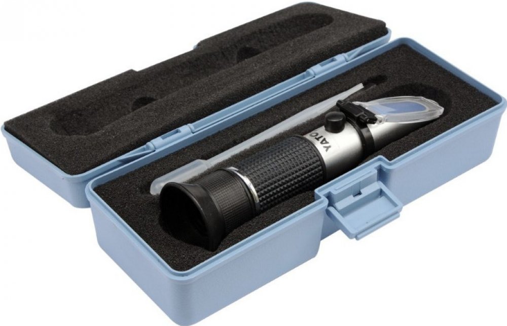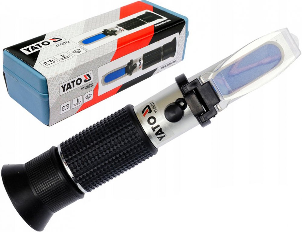 Refraktometr na měření provozních kapalin automobilu, YATO-06722 Refraktometr je zařízení, pomocí kterého lze stanovit fyzikální vlastnosti kapalin měřením jejich refrakčního indexu na rozhraní prostředí. Refraktometrem je možné určit stupeň nabití akumulátoru, teplotu tuhnutí chladících kapalin na bázi propylenglykolu nebo ethylenglykolu a taktéž teplotu tuhnutí kapalin do ostřikovačů. Výrobek je dodáván v kompletním stavu a nevyžaduje žádnou další montáž. K refraktometru je přibalená pipeta, šroubovák a hadřík. Měření kapaliny 1)Pipetou naberte malé množství kapaliny. 2)Zdvihněte krycí deštičku a naneste 2-3 kapky kapaliny na hranol přístroje. 3)Krycí deštičku sklopte nazpět tak, aby se měřená kapalina rovnoměrně a bez bublin rozprostřela po ploše hranolu. 4)Po 30 sekundách nasměrujte krycí deštičku na zdroj světla a podívejte se do okuláru. 5)Obraz je třeba zaostřit, pomocí zaostřovacího kroužku. A odečíst polohu přechodu světlo/stín na příslušné stupnici označující vlastnosti dané kapaliny. Kvalitní refraktometr vhodný k měření provozních kapalin u automobilů.