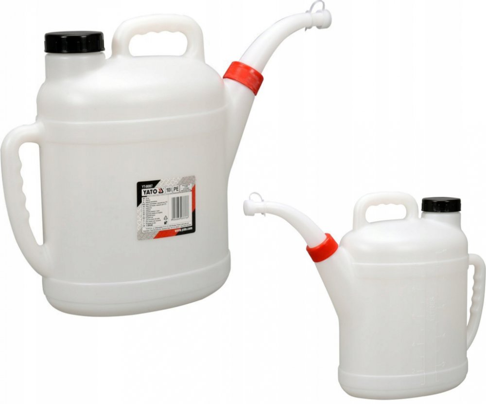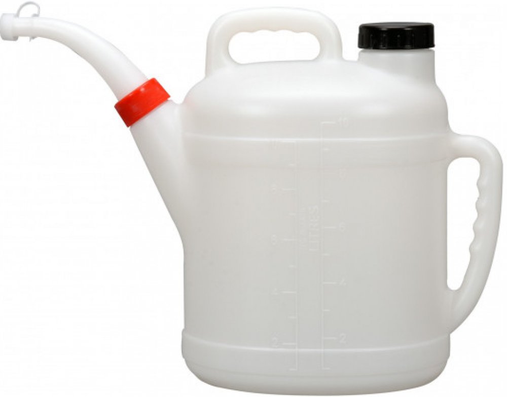 Zhotovení z odolného PE materiálu odolného vůči technickým kapalinám, opatřená šroubovacím víkem a ohebnou nálevkou.
