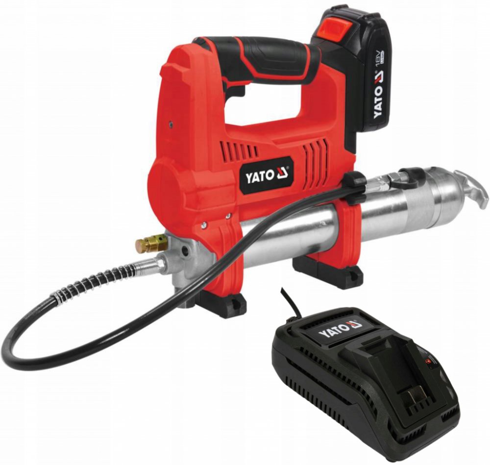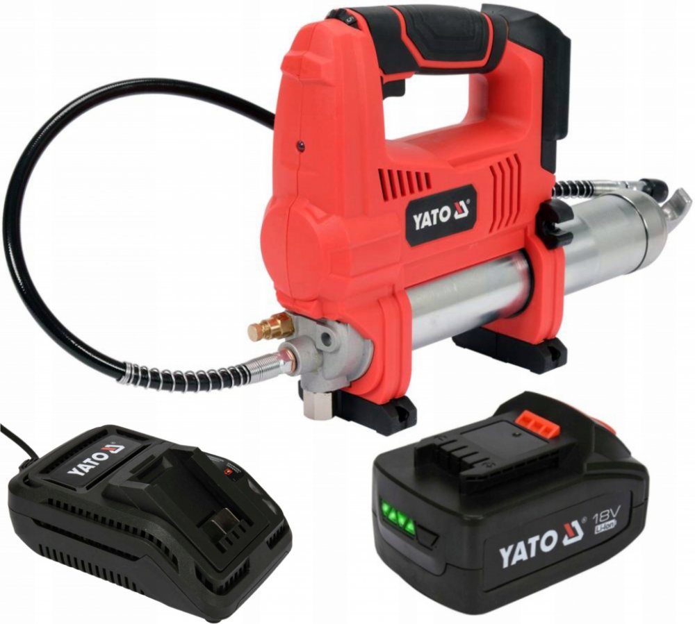 Yato Mazací pistole AKU 620 bar, YT-07020 Mazací pistole AKU je určena pro mazání stavebních, zemědělských a průmyslových strojů a zařízení i osobních a nákladních automobilů. Pistole se dodává v sadě s akumulátorem a nabíječkou. Technická data kapacita baterie3000 mAh účinnost284 g/min délka hadice76 cm tlak620 bar kapacita600 g