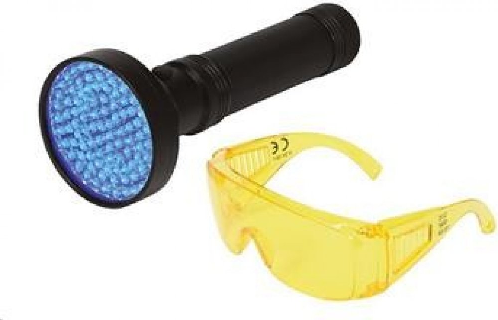 Počet 100 LED UV poskytuje velmi silný paprsek záření pro usnadnění detekce úniku. Součástí balení jsou ochranné brýle proti UV záření, které splňují požadavky evropské směrnice o osobních ochranných prostředcích.