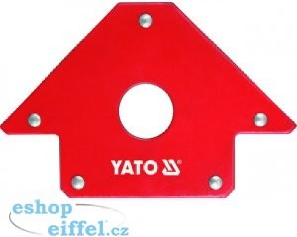 Magnetický úhelník YATO z ocelového plechu a silných feritových magnetů. Umožňuje přesné spojování materiálů v úhlech 45°, 90° a 135°. Nosnost magnetu cca 22,5 kg. Povrchová úprava červené práškové lakování. Tento má navíc otvor pro montáž válcových součástí, jako jsou trubky a tyče, o průměru až 28 mm.