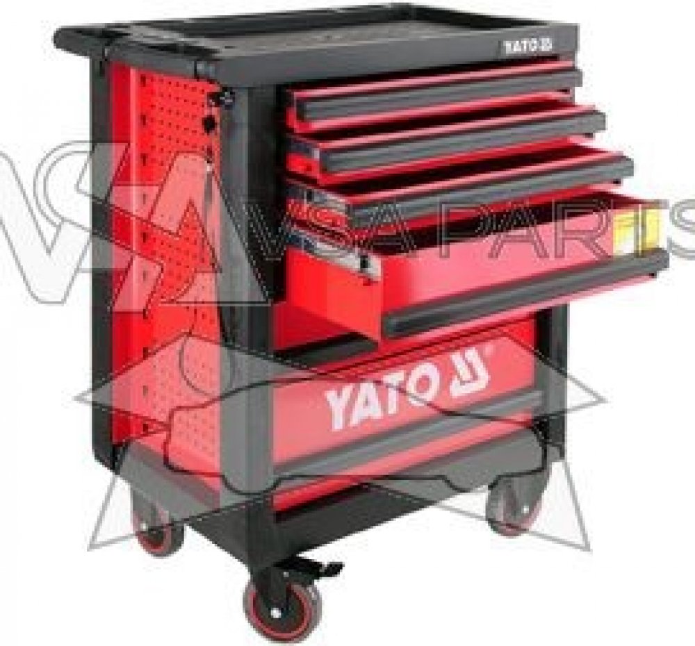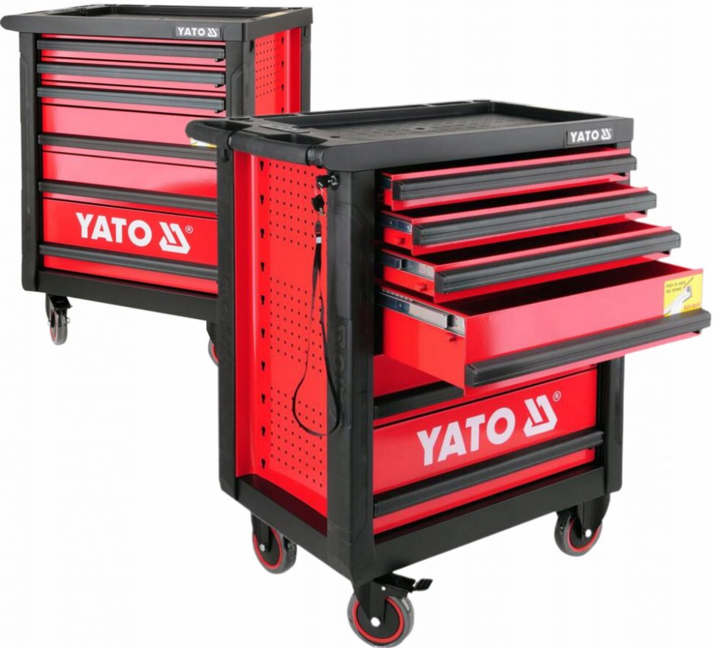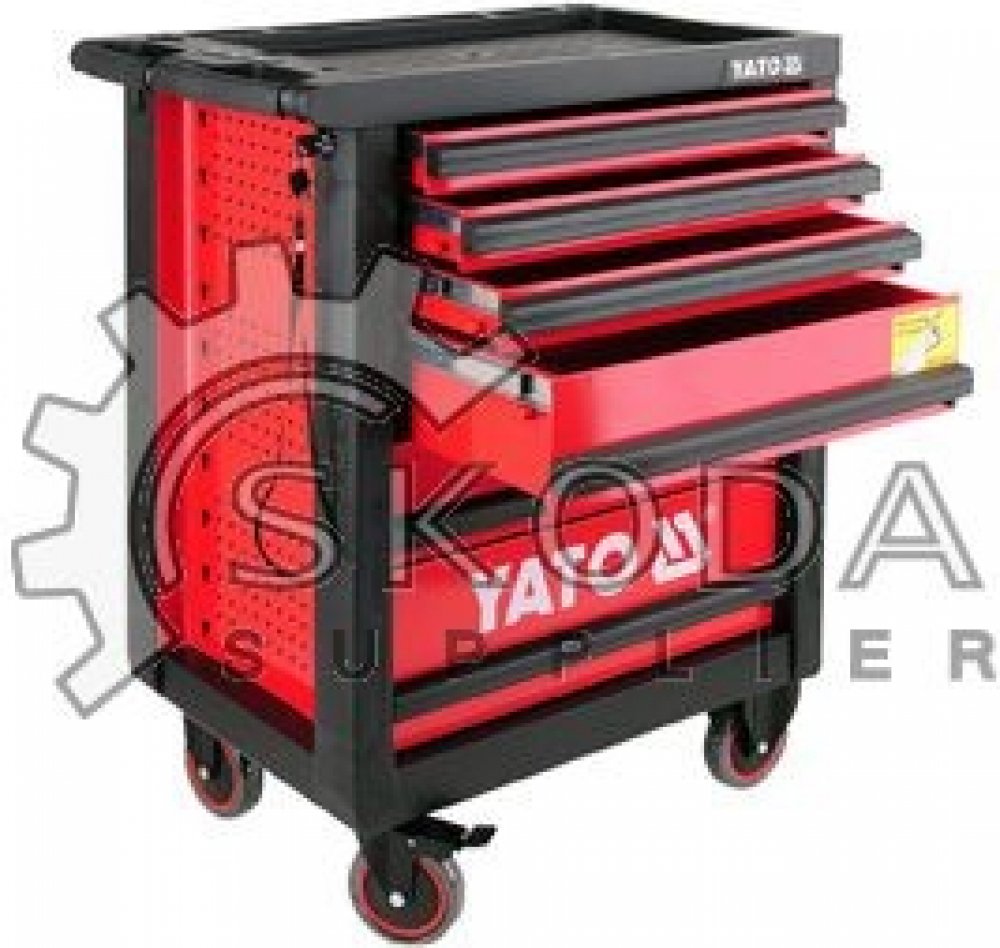 Dílenská skříňka značky YATO, vybavena 6 zásuvkami s kuličkovými ložisky s centrálním zamykáním.