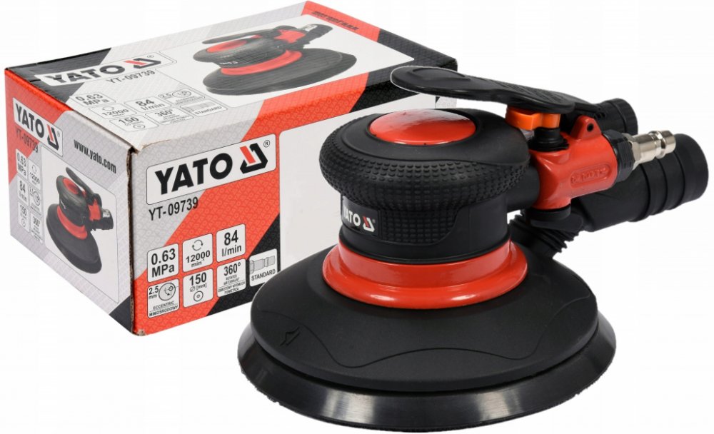 150 mm 12000 ot/min 1.4 kg Yato excentrické 2.5 mm profesionální pneumatické pro silné odstranění materiálu pro mobilní úlohy s nízkými vibracemi a hlučností
