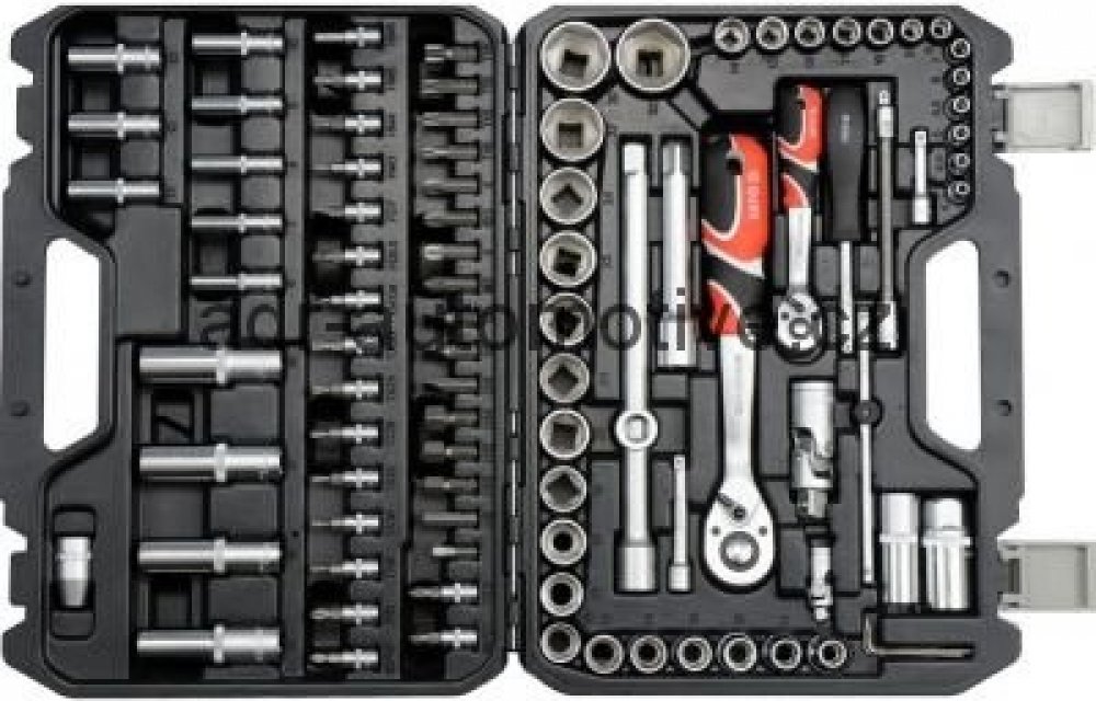 Gola sada 1/2" a 1/4" obsahuje 94ks: nástavců, prodlužovacích nástavců, ráčny s plastovou rukojetí a další příslušenství. Vyrobené z kvalitní oceli CrV40, CrV6150, CrV50BV30, CrMo440 a S2 s funkcí AS-DRIVE. Ráčny mají jemný 72 zubý chod.
