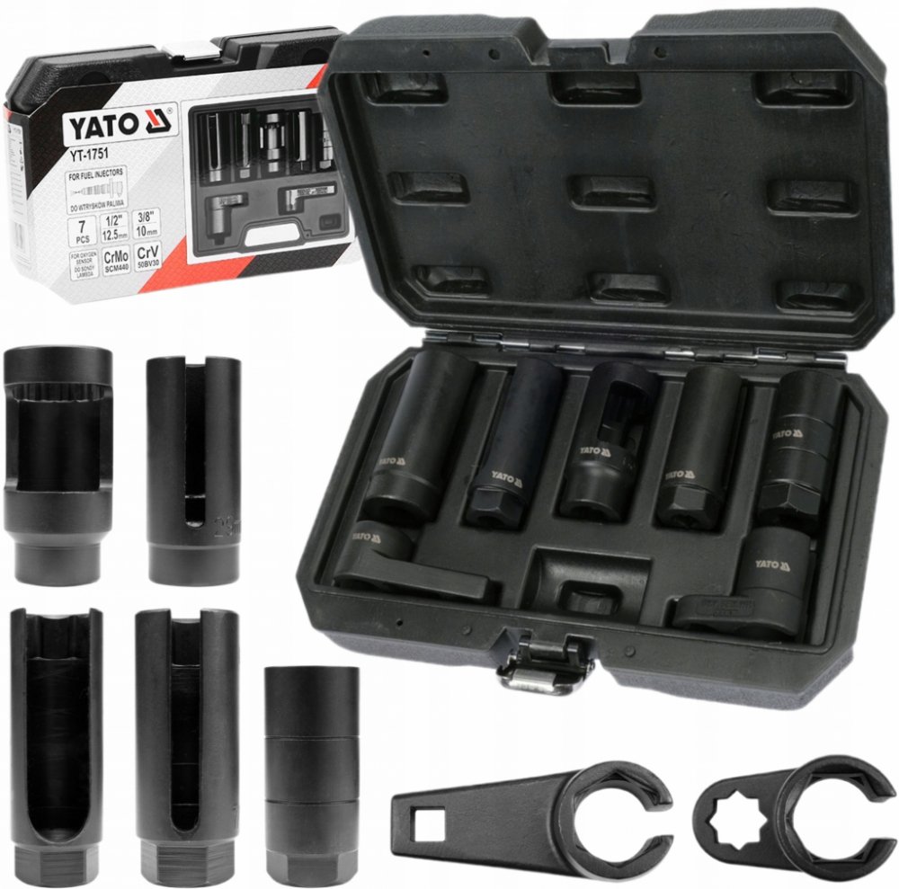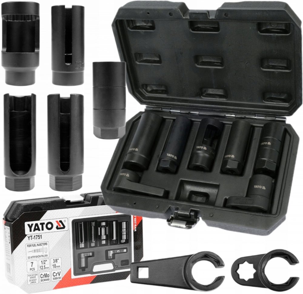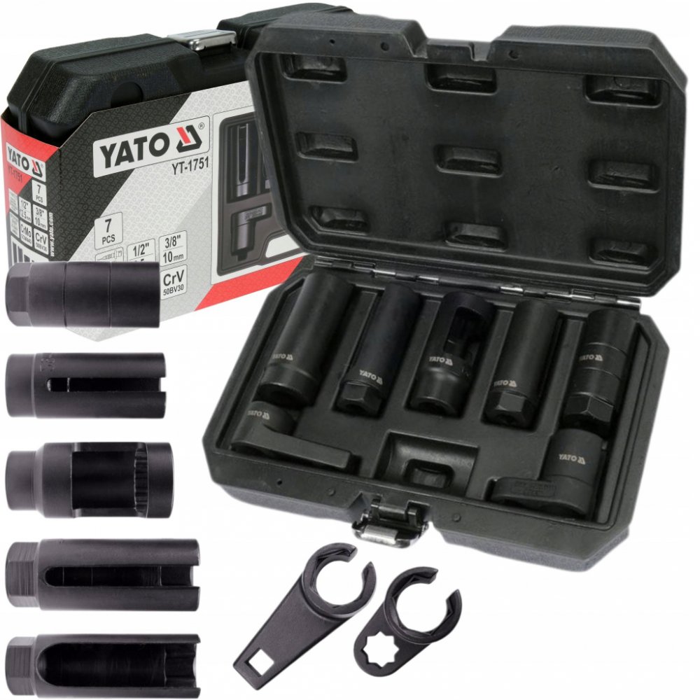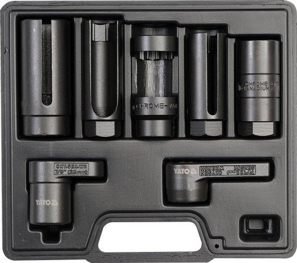 Sada speciálních montážních klíčů ma lambda sondy a vstřikovačů dieselových motorů automobilů, sada 7 kusů yato. Vyrobeno z kvalitní chrom molybdenové slitiny oceli Cr-Mo SCM-440.