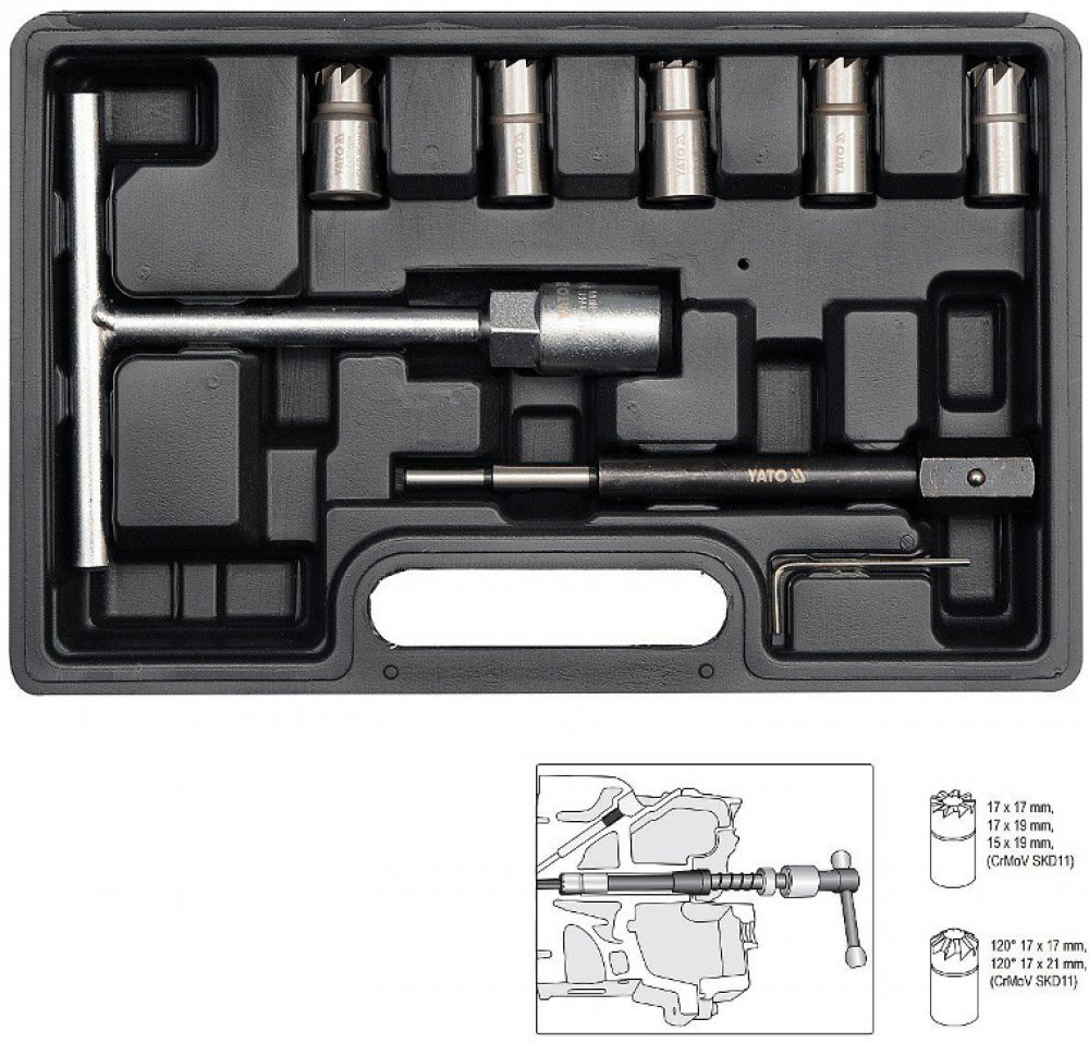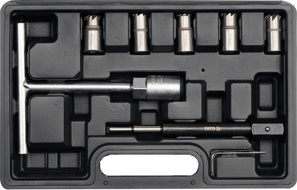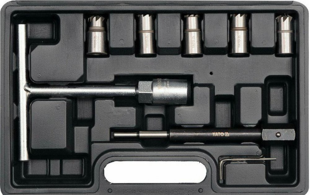 Speciální sada fréz pro opravy a čištění sedel vstřikovacích trysek Common rail dieselových motorů. Tato sada vám umožní znovu přesně osadit diesel injector na místo. Vylučuje riziko profuku vlivem nahromaděných uhlíkových usazenin a odstraní případné nerovnosti vzniklé vlivem koroze.