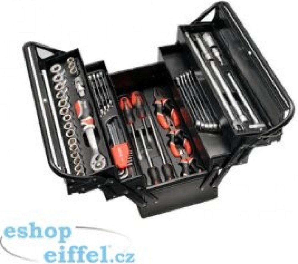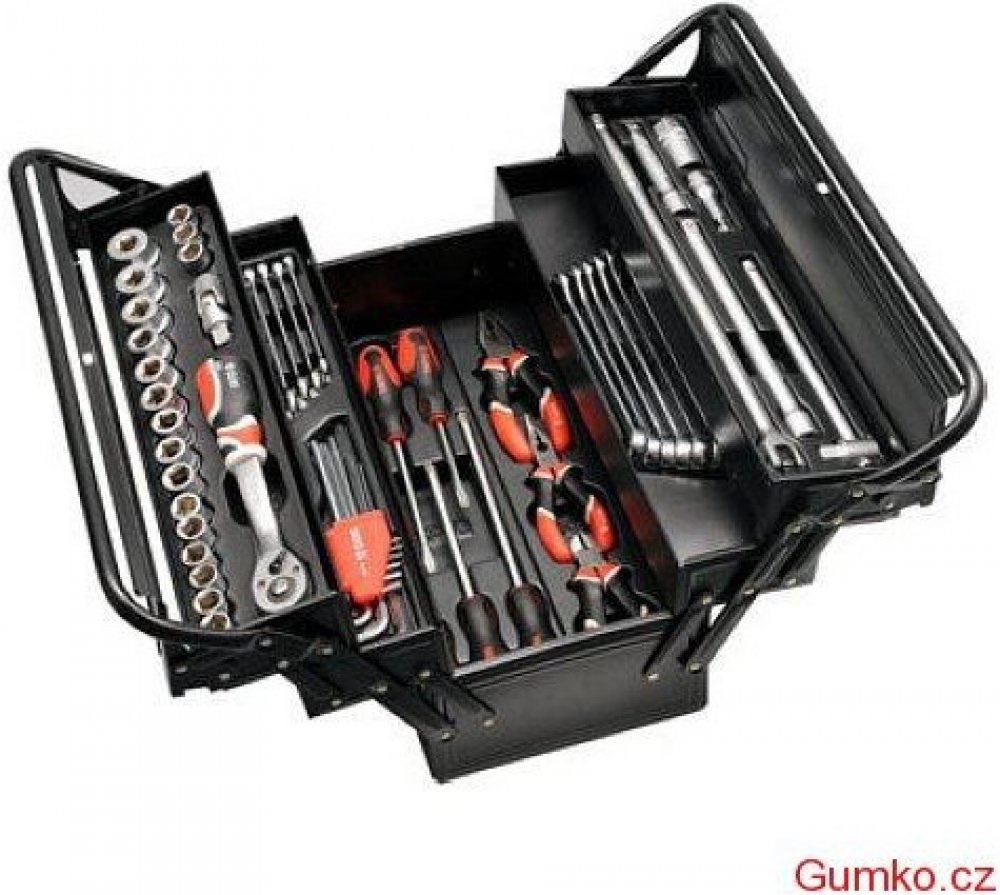 - Sada 62 kusů nářadí v kovovém kufru.