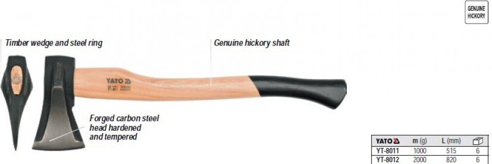 Sekerka 1000 g s násadou z ořechového dřeva Yato YT-8011 Sekerka Yato YT-8011 je určena ke štípání dříví a drobným tesařským pracím. Díky pevnému provedení s vaší prací spolehlivě pomůže. Popis produktu Tato sekyra má hlavu z kvalitní uhlíkaté oceli, která je kalená a temperovaná pro zvýšení tvrdosti a odolnosti proti opotřebení. Hlava je precizně vykova...