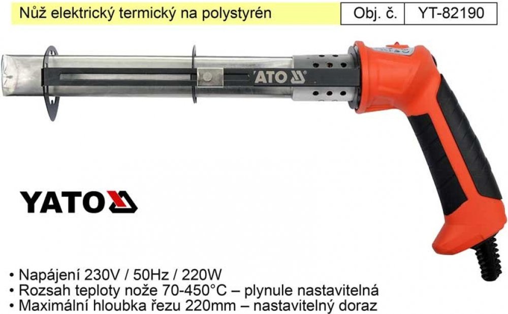 Řezačka slouží k dělení, nebo zhotovování otvorů do polystyrénu tepelným způsobem. Je vybavena regulací teploty nože a nastavením hloubky řezu. Je napájená ze sítě 230V.