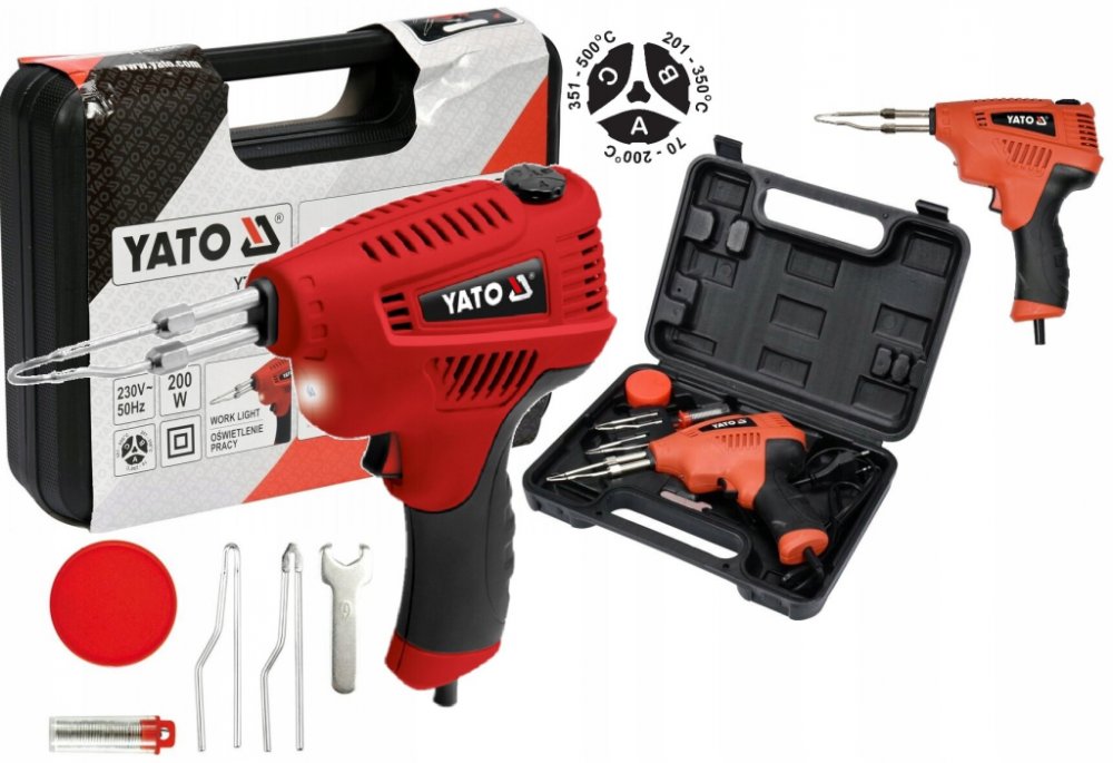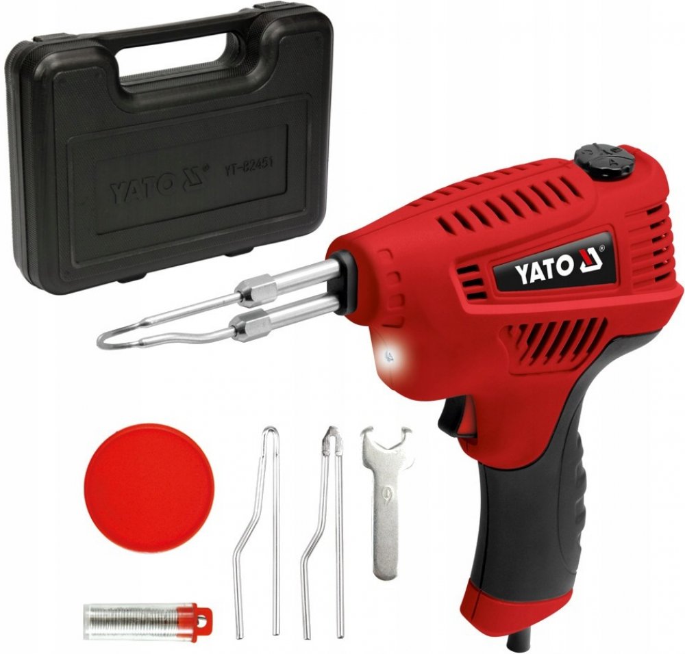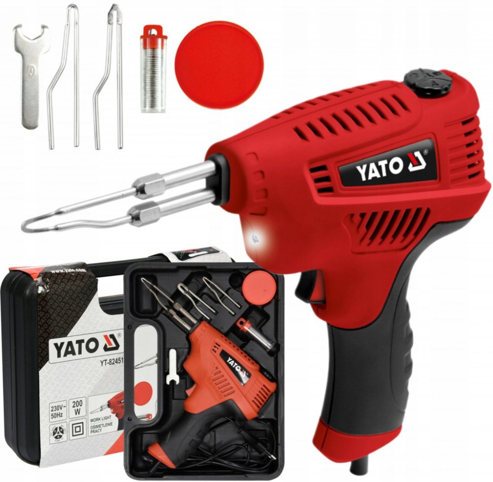 Transformátorová páječka Yato TY-82451 s výstupním výkonem 200 W , která zajišťuje velmi rychlé zahřátí hrotu. Yato YT-82451 se vyznačuje velmi dobrou kvalitou zpracování, vyrobeno z těch nejlepších materiálů, při zachování ergonomického tvaru. Pájka je vybavena rukojetí z protiskluzového materiálu , díky které dobře padne do ruky. Má také reflektor pro pracovní plochu. Teploty cca 350 °C je dosaženo během 8 sekund v nejvýkonnějším režimu a s použitím hrotu určeného pro první montáž.