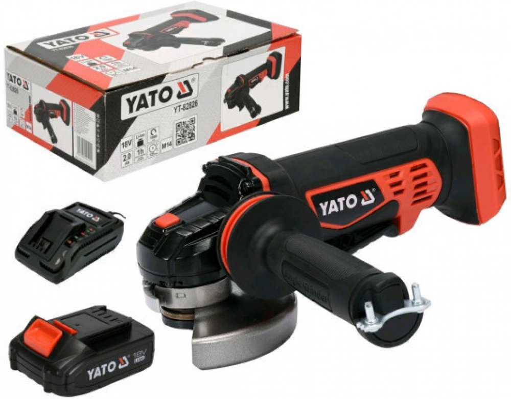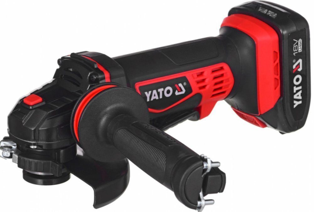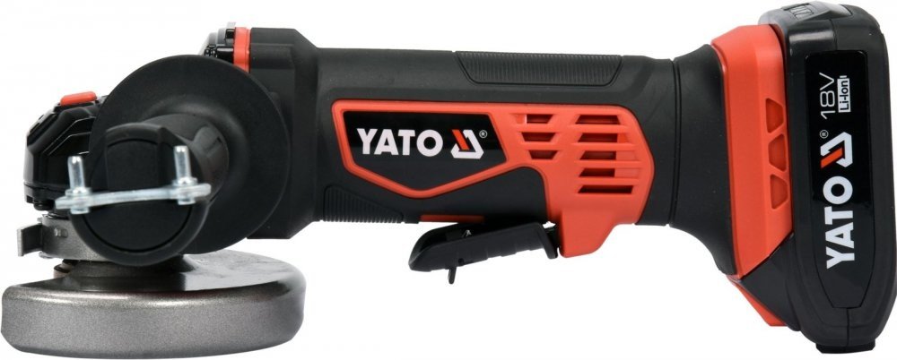Kompaktní AKU úhlová bruska značky Yato s výkonným motorem až s 10000 otáčkami za minutu.