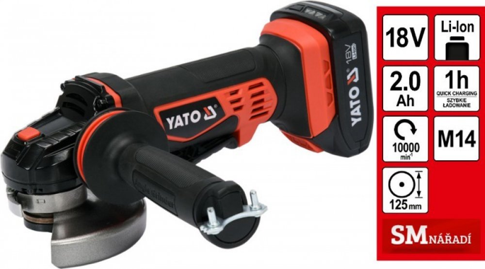 1.4 W 125 mm 10000 ot/min 3.2 kg Yato úhlové M 14 60 W 18 V profesionální akumulátorové na dřevo a kovy pro mobilní úlohy závitové upnutí s nízkými vibracemi a hlučností