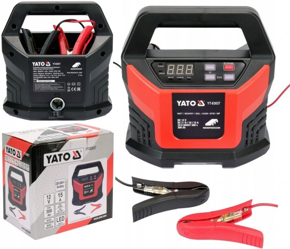 Elektronická nabíječka akumulátorů s napájením 230V, určená pro 12V akumulátory o kapacitě 2-300 Ah. Umožňuje nabíjet tzv mokré baterie, gelové baterie, baterie AGM, EFB a MF. Nabíječka je také vybavena LED displejem pro správnou funkci a mikroprocesorem pro správné nabíjecí hodnoty výstupního proudu. Má zabudovanou funkci podpory nabíjení proudem 20 A po dobu 300 sekund. Funkce udržování správného napětí u baterií pracujících v klidovém režimu - konzervační nabíjení. Specifikace: