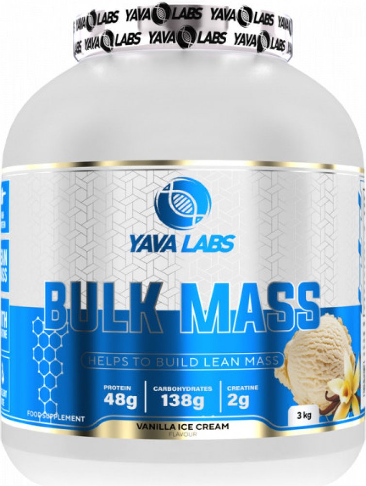 Bulk Mass od Yava Labs je doplněk výživy vyvinutý s lehce stravitelnými sacharidy, který tělu dodá velké množství energie potřebné během tréninku. Pomáhá lidem získat extra kalorie, které potřebují k budování svalů. Obsahuje také vysoké množství zdravých bílkovin pocházejících z mléka. Vaše svaly nebudou vyčerpávat aminokyseliny potřebné pro rychlý růst a regeneraci díky izolátu syrovátkové bílkoviny .