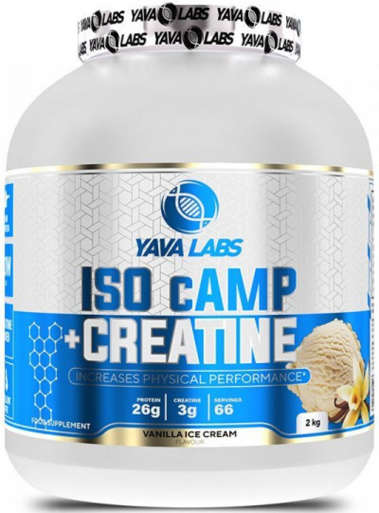 Nízký obsah tuku a sacharidů: Perfektní před a po tréninku díky nízkému obsahu tuků a sacharidů.Yava Labs ISO cAMP + Kreatin 2kg proteinový izolát + kreatin – inovativní kombinace!
