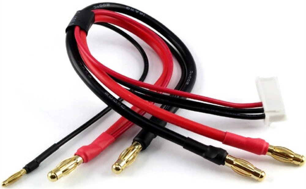 Specifikace:Materiál: 14AWG silikonový kabelDélka: 23.5mmServisní konektor: JST-XHKonektory: 4x 4mm zlacené banánky, 1x 2mm zlacený banánekSprávný postup při zapojování:Vzhledem ke kombinovanému charakteru tohoto nabíjecího kabelu je třeba při připojování k nabíječi, balanceru a nabíjenému akumulátoru dodržet zcela určitý postup.1. Zapojte červený a černý nabíjecí (silový) vodič se 4 mm konektory do výstupu nabíječe.2. Zapojte červený a černý nabíjecí (silový) vodič se 4 mm konektory do akumulátoru.3. Připojte červený servisní kablík se 2 mm konektorem do akumulátoru.4. Teprve nakonec zapojte bílý servisní konektor do balanceru/nabíječe.Tímto způsobem omezíte na minimum nebezpečí zkratu akumulátoru (pokud byste nabíjecí kabel zapojili nejdříve do akumulátoru) a vyhnete se možnosti, že nabíječ nebo balancer budou hlásit chybový stav. (To by mohlo nastat v případě, že byste nejprve připojili silové vodiče a bílý servisní konektor do nabíječe a balanceru. Na výstupu (+) nabíječe je zpravidla určité malé "měkké" napětí sloužící k rozpoznání zkratu na výstupu, které byste takto přivedli do balanceru na vývod odpovídající (+) druhého článku, zatímco na "středovém" vývodu odpovídajícím (+) prvního článku by nebylo žádné napětí. Balancer by poté protestoval proti připojení akumulátoru s články o nulovém resp. nesprávném napětí, aniž by ve skutečnosti byl jakýkoliv akumulátor připojen.)