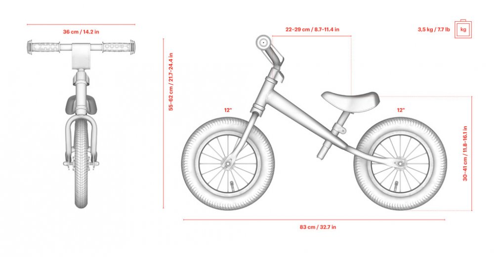 Yedoo oranžová s gumovými koly 3.5 kg s kovovým rámem 50 kg 1.5 let 12 " pro kluky a holky 30 - 41 cm YEDOO s nafukovacími koly