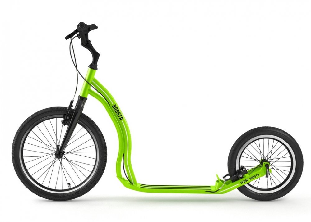 Koloběžka Yedoo Rodstr je univerzální koloběžka s lehkým hliníkovým rámem. Díky svým rychlým 20" kolům je vhodná jak na krátké cesty, na přepravu do školy či do práce, ale i do mírného terénu. Disponuje kvalitními čelisťovými brzdami, plášti značky Kenda a ergonomicky tvarovanými madly, která zajišťují maximální pohodlí při jízdě. Řídítka koloběžky Yedoo Rodstr jsou nastavitelná, a to v rozsahu 92...
