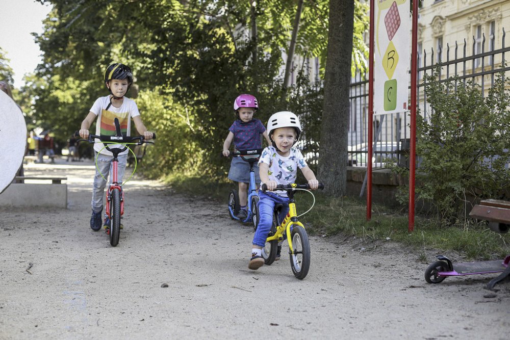 reflexní tečky na pneumatikách obou kol a reflexní „očička“ zajistí, aby vaše děti nikdo nepřehlédl