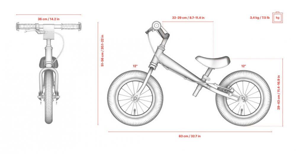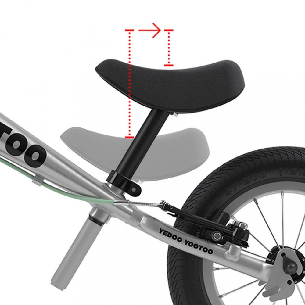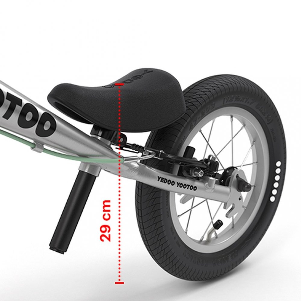 Ke standardní výbavě odrážedla Yedoo YooToo patří měkké a anatomicky tvarované sedlo, ergonomická madla s vyztuženými konci, doraz proti přetočení lehkých a pevných řídítek, ložiskové hlavové složení, pneumatiky Kenda nebo V brzda Tektro s juniorskou brzdovou páčkou pro perfektní úchop a snadné brždění – za každého počasí. Dvoupolohová zadní vidlice pak dokáže měnit výšku sedla, takže YooToo skvěle poslouží těm úplně nejmenším dětem a vydrží s nimi co nejdéle. To vše komprimován do pouhých – a ve své kategorii jednoznačně bezkonkurenčních – 3,4 kg!