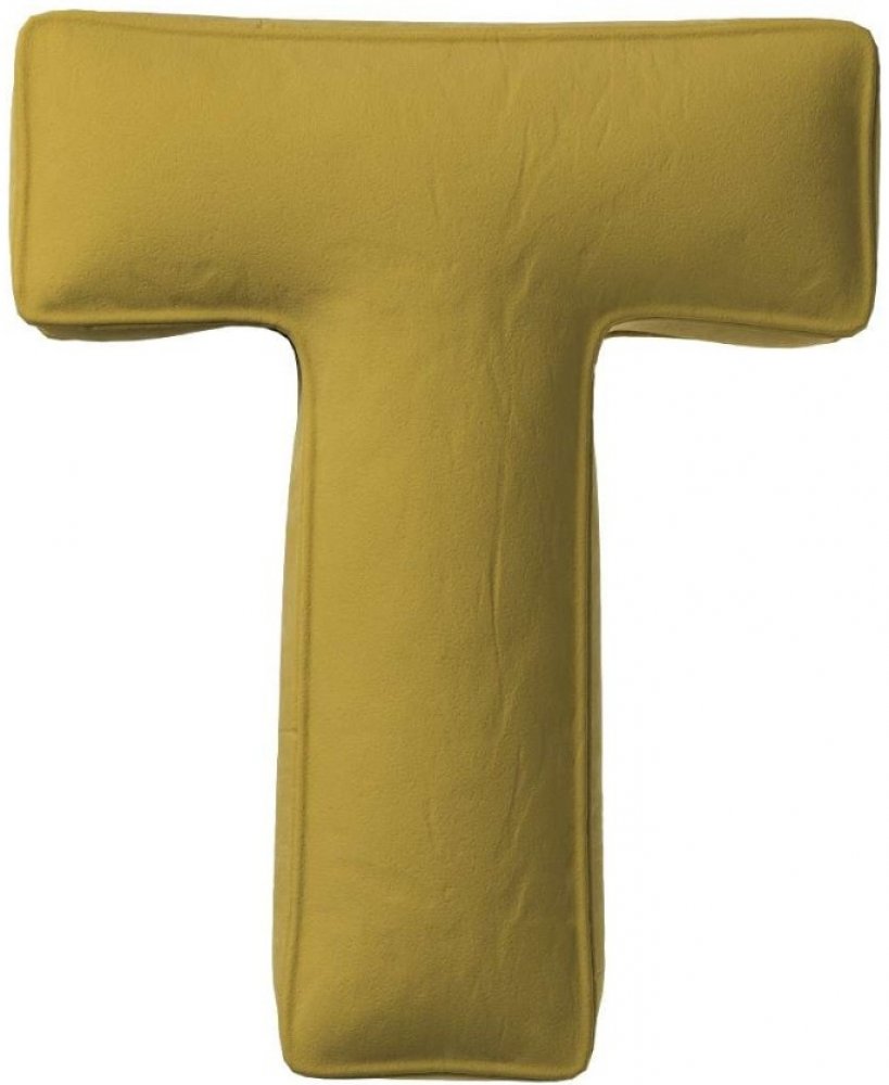 Yellow Tipi Olivově zelený sametový polštář písmeno T 40cm