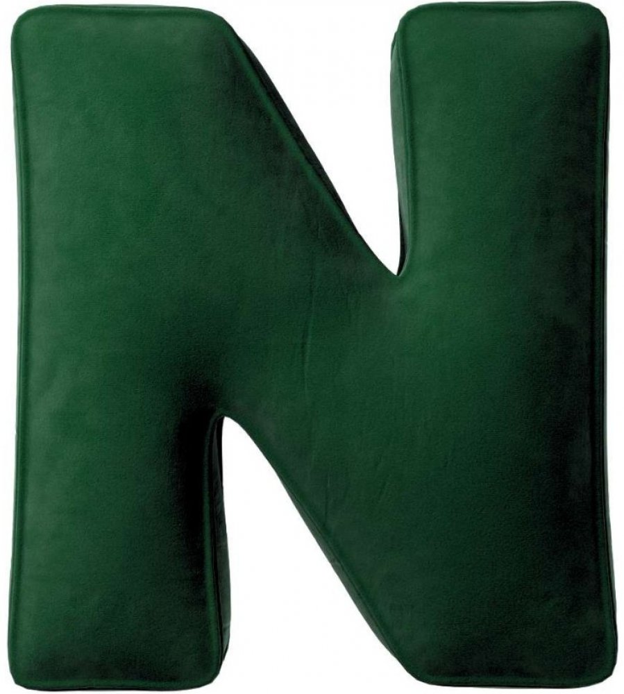 Yellow Tipi Tmavě zelený sametový polštář písmeno N 40cm