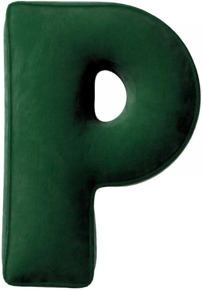 Yellow Tipi Tmavě zelený sametový polštář písmeno P 40cm