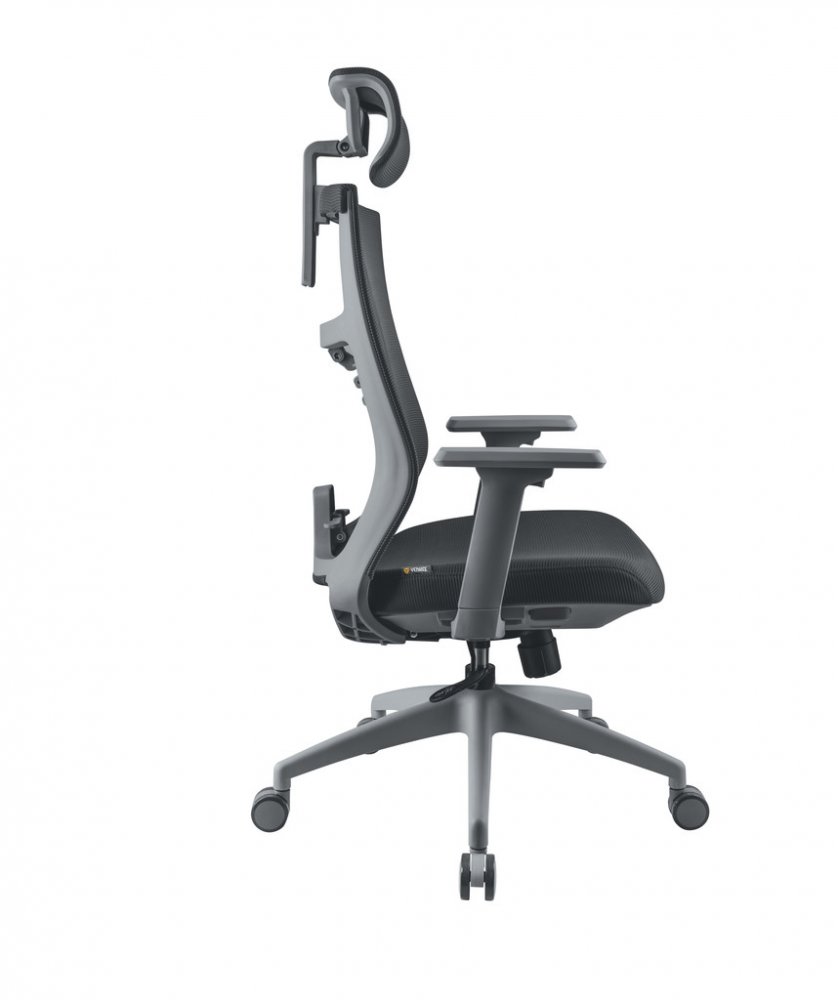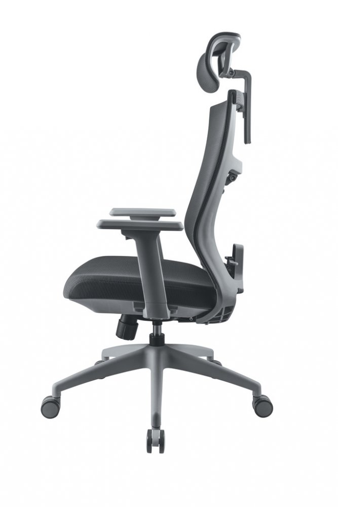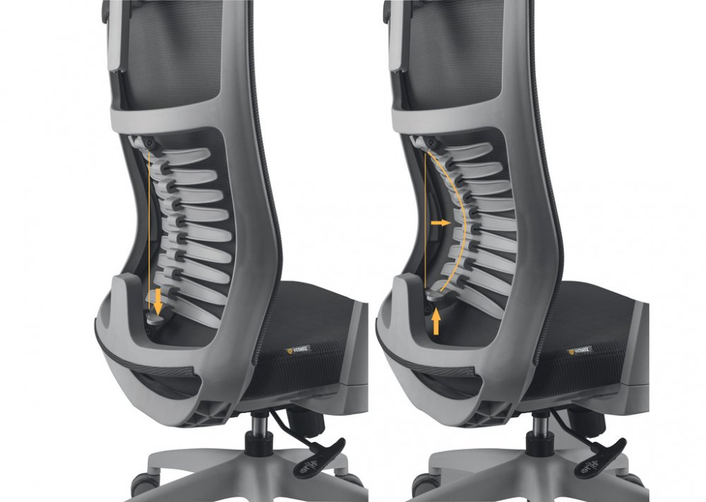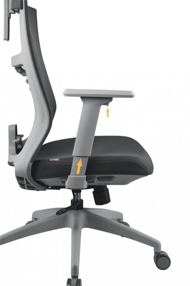 Kancelářská židle FISHBONE svou konstrukcí, výběrem materiálů a designem podporuje správné sezení, nabízí absolutní komfort a vizuálně zpříjemňuje vaše pracovní, studijní nebo herní prostředí. Židle je vybavena mechanismem, který zajišťuje synchronní naklápění opěradla a sedáku. Tato funkce umožnuje nejen nastavení opěradla do optimálního úhlu, ale také naklápění sedáku při houpání, čímž neustálé udržuje správný úhel mezi opěradlem a sedákem. Aretace náklonu a nastavení výšky sedu se ovládají páčkou na pravé straně sedáku, pod kterým je zároveň umístěna i otočná regulace tuhosti houpání. Samotnou kapitolou je FISHBONE konstrukce bederní opěry, kterou tvoří devět dvoukřídlých zádových podpěrek. Nastavitelná opěra nabízí čtyři úrovně přítlaku na bederní část a poskytuje tak komplexní oporu páteře a zádového svalstva. Bederní opěra je potažena síťovinou, čímž se zvyšuje vzdušnost a brání přehřívání a pocení dotykových partií těla. Ramenní část opěry je rovná a zajišťuje dostatek místa a komfortu. Robustní sedák je vyplněný studenou pěnou a je potažen kvalitním čalouněním, které je příjemné na dotyk a snadno udržovatelné. Rozměry a tvar sedáku zaručují správné podepření dolních končetin a stejně jako i bederní opěrka, zaručuje dostatek místa a komfortu bez ohledu na tělesné proporce uživatele. Anatomicky tvarovaná a výškově a úhlově nastavitelná hlavová opěrka zaručuje absolutní komfort pro uživatele s různou výškou postavy. Opěrka je potažena síťovinou pro lepší vzdušnost a podepření v oblasti krční páteře. Loketní opěrky jsou měkčené a nastavitelné. Lze nastavit jejich výšku, úhel a hloubku a dosáhnout tak optimální polohy předloktí a ramen pro pohodlné sezení bez ohledu na výšku uživatele anebo pracovní plochy. Odolný nylonový kříž v kombinaci s univerzálními kolečky vhodnými pro všechny druhy povrchů zaručují vysokou mobilitu, spolehlivost a dlouhou životnost. Židle je certifikovaná na nosnost do 120 kg a je vhodná pro uživatele výšky 150 až 200 cm.