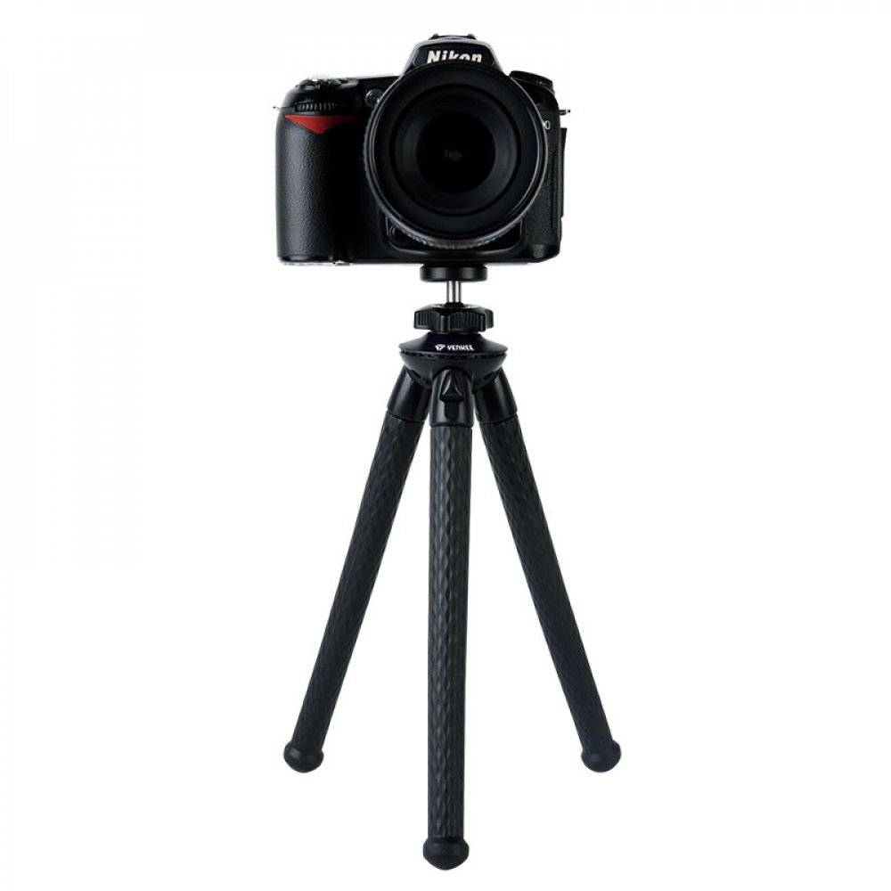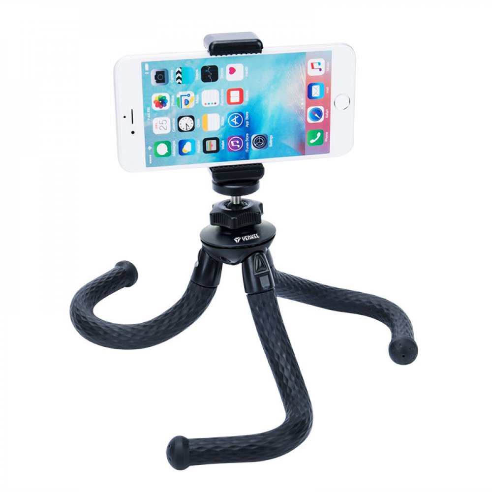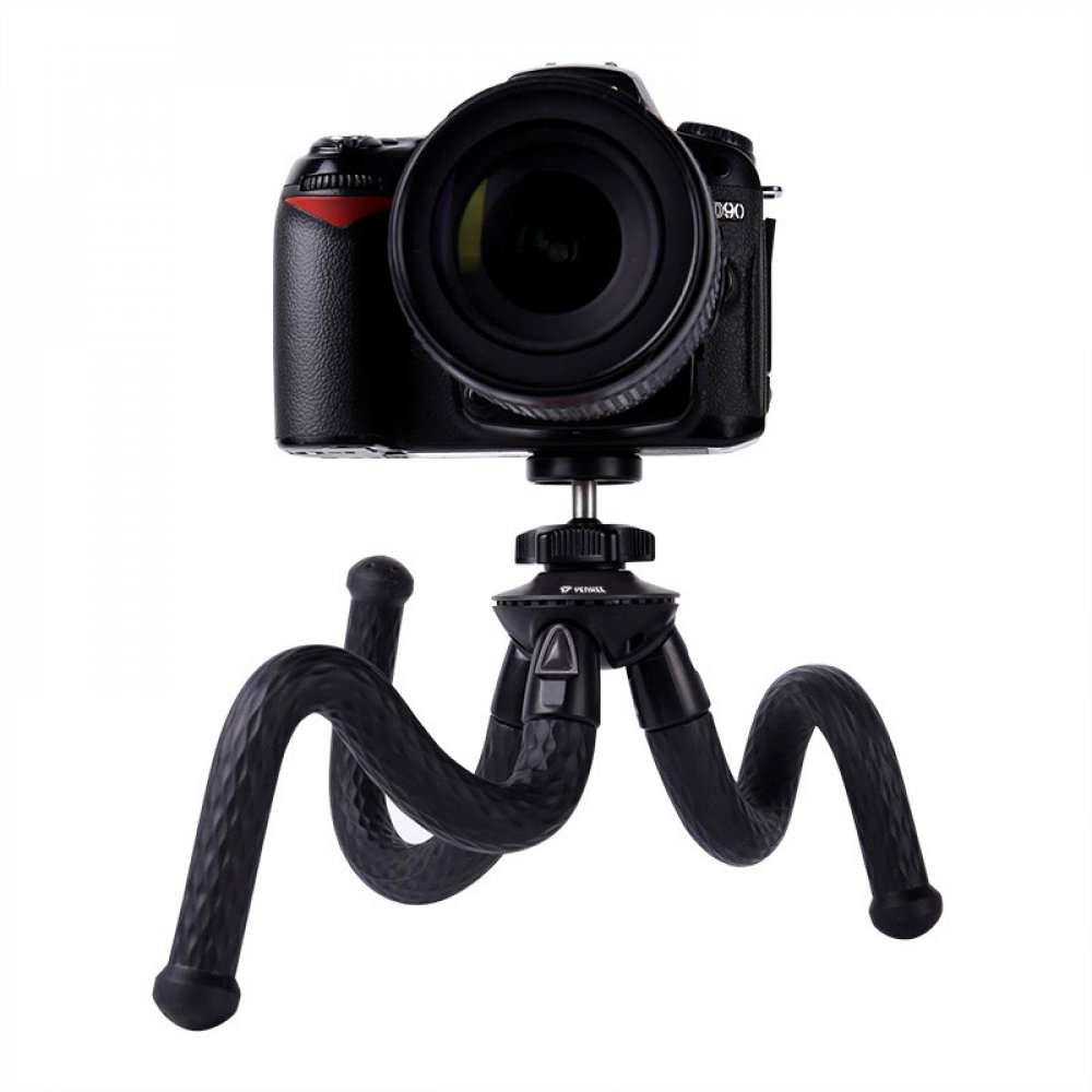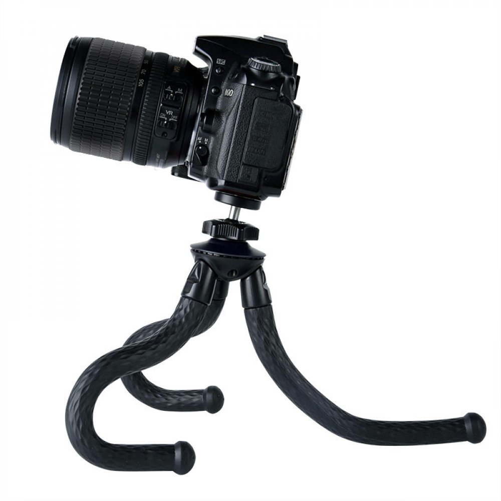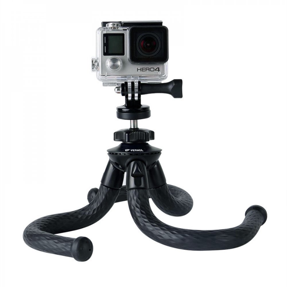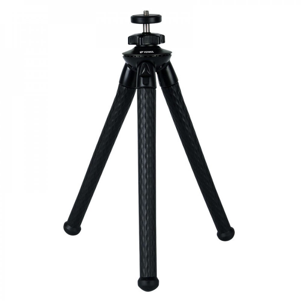 Flexibilní univerzální přenosný stativ s vestavěným standardním 1/4" závitem pro šroub pro všechny fotoaparáty, druhy a podmínky fotografování. Sada stativu je dodávána s držákem telefonu a držákem na stativ pro akční kamery. Pryžové nohy s extrémní přilnavostí jsou navrženy pro zajištění rovnováhy na jakémkoli nerovném povrchu nebo pro obtočení jakéhokoli dostupného předmětu pro bezpečnou a optimální perspektivu snímání. Otočná kulová hlava zajišťuje 360° perspektivu snímání. Vhodný na cesty, pro domácí i komerční použití (Vlog, živé přenosy, recenze a představení produktů, apod.).