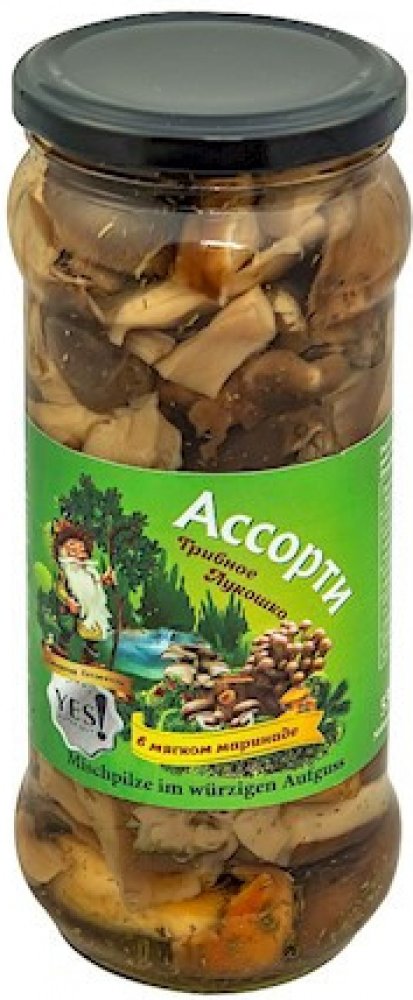 Assorti houby v marinádě od značky Yes! v dóze 315 g - to je chutná a aromatická svačina, která je směsí různých hub naložených v octě, soli a koření. Sortiment kombinuje několik druhů hub, což dává produktu rozmanitost textur a chutí. Díky marinádě s kořením má sortiment bohatou kyselo-slanou chuť s lehkými kořenitými tóny.
