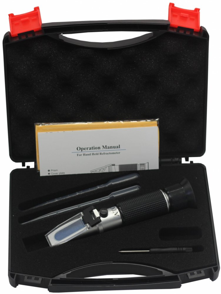 Obsah balení: Refraktometr, šroubovák pro kalibraci, pipeta, plastový kufřík, hadřík, návod, kalibrační set.