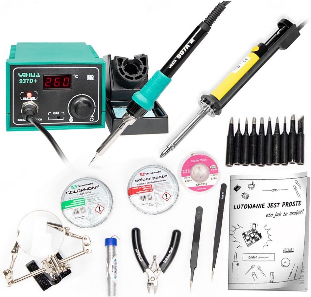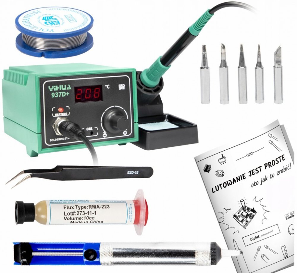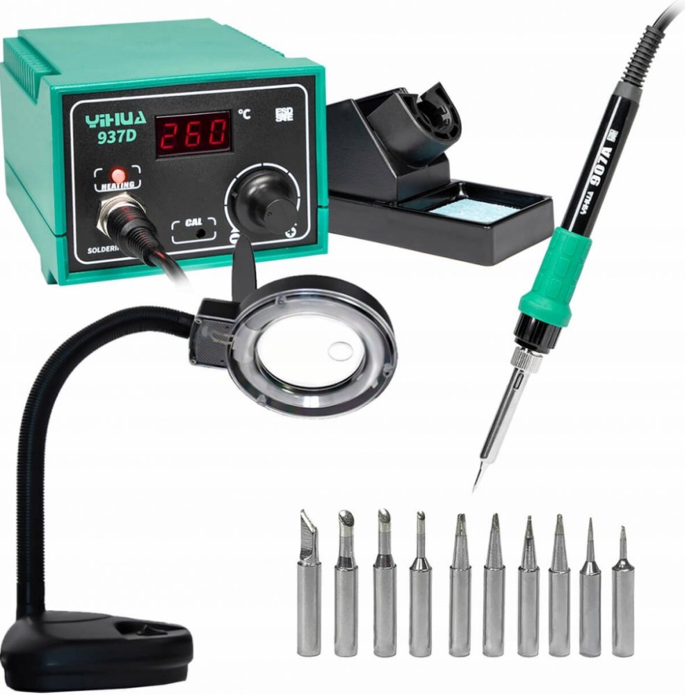 Pájecí stanice Yihua 937D je vybavena vysoce výkonnou kolbou 50W, která je schopna rychle ohřát hrot do očekávané teploty, jakož i kompenzuje ztráty tepla v průběhu pájení. Má také system ESD SAFE zajišťující ochranu elektronických součástek před poškozením. Rukojeť stanice je malá a výhodná při používání, u stanice povužíváte známé typy hrotů. V naší nabídce je máme k dispozici.