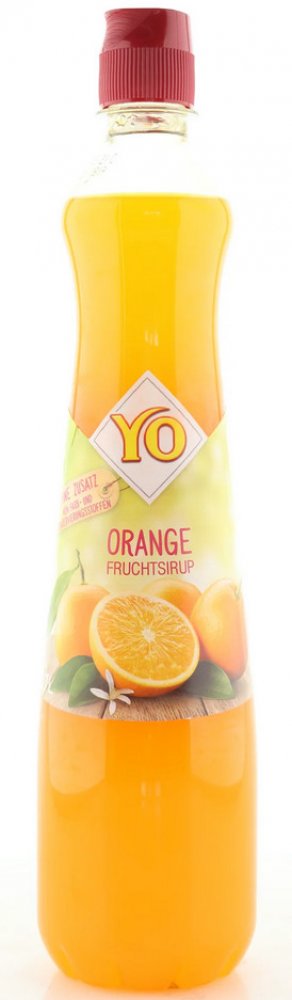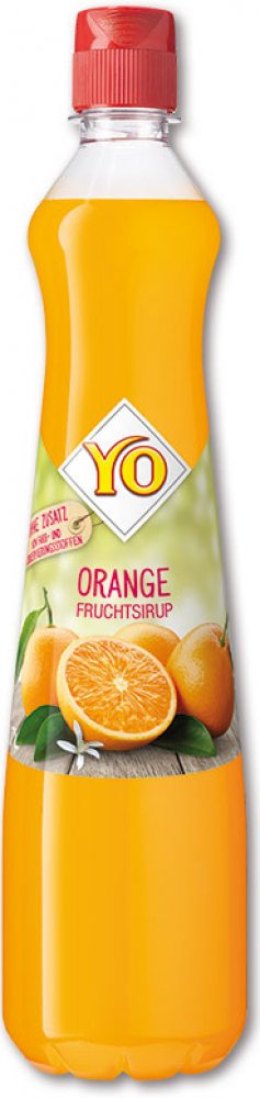 Yo pomeranč YO tekutý koncentrát citrusové v plastové láhvi se standardním obsahem cukru skutečné ovoce 0.7 l 1:7 5.6 L 10.0 % 9.3 g per 100 ml 38.0 kcal per 100 ml