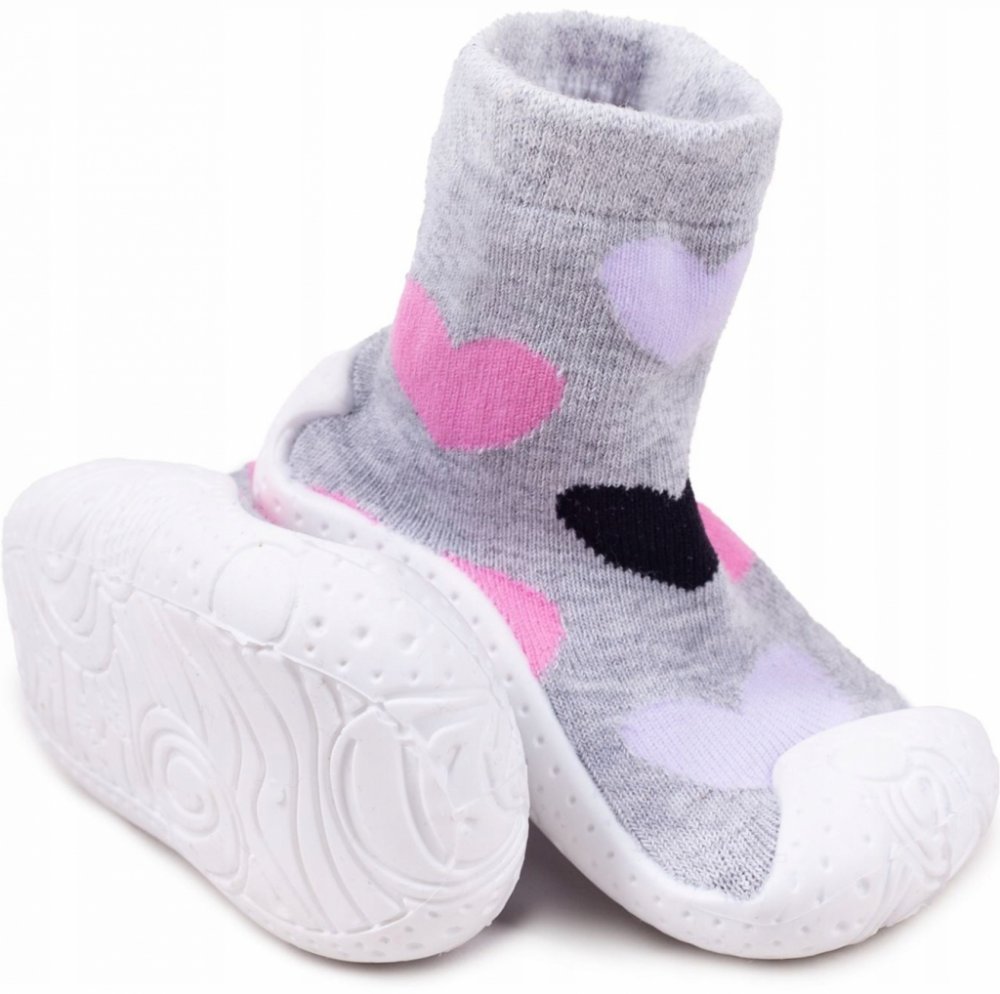 YO ponožkoboty dívčí šedé se srdíčky