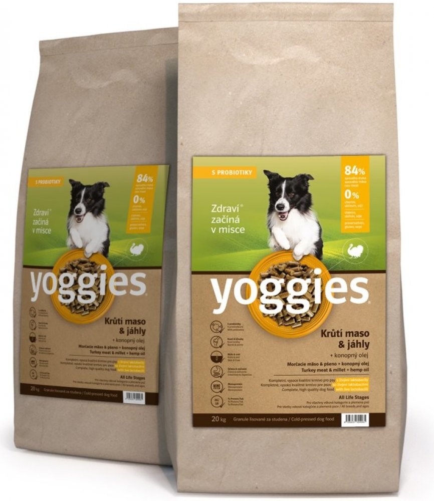 Granule Yoggies jsou vyráběny šetrným způsobem – lisováním za studena. Díky tomu si zachovávají přirozenou masovou chuť a důležité živiny. Vyrobeny jsou pouze z kvalitních farmářských surovin bez obilovin, sóji a umělých přísad. Obsahují 84 % kvalitního masa (před sušením). Granule jsou snadno stravitelné, a díky probiotikům posilují imunitu a zdravé trávení v každém psím věku.