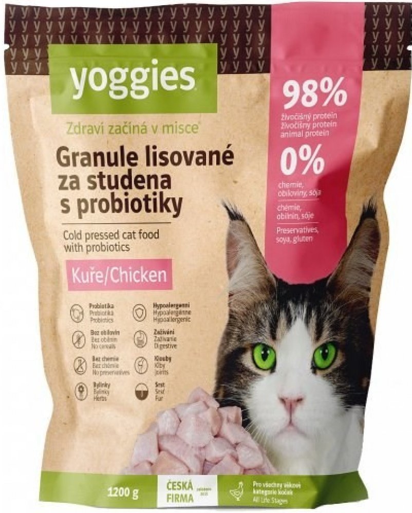 Yoggies Granule pro kočky s kuřecím masem lisované za studena 1,2 kg