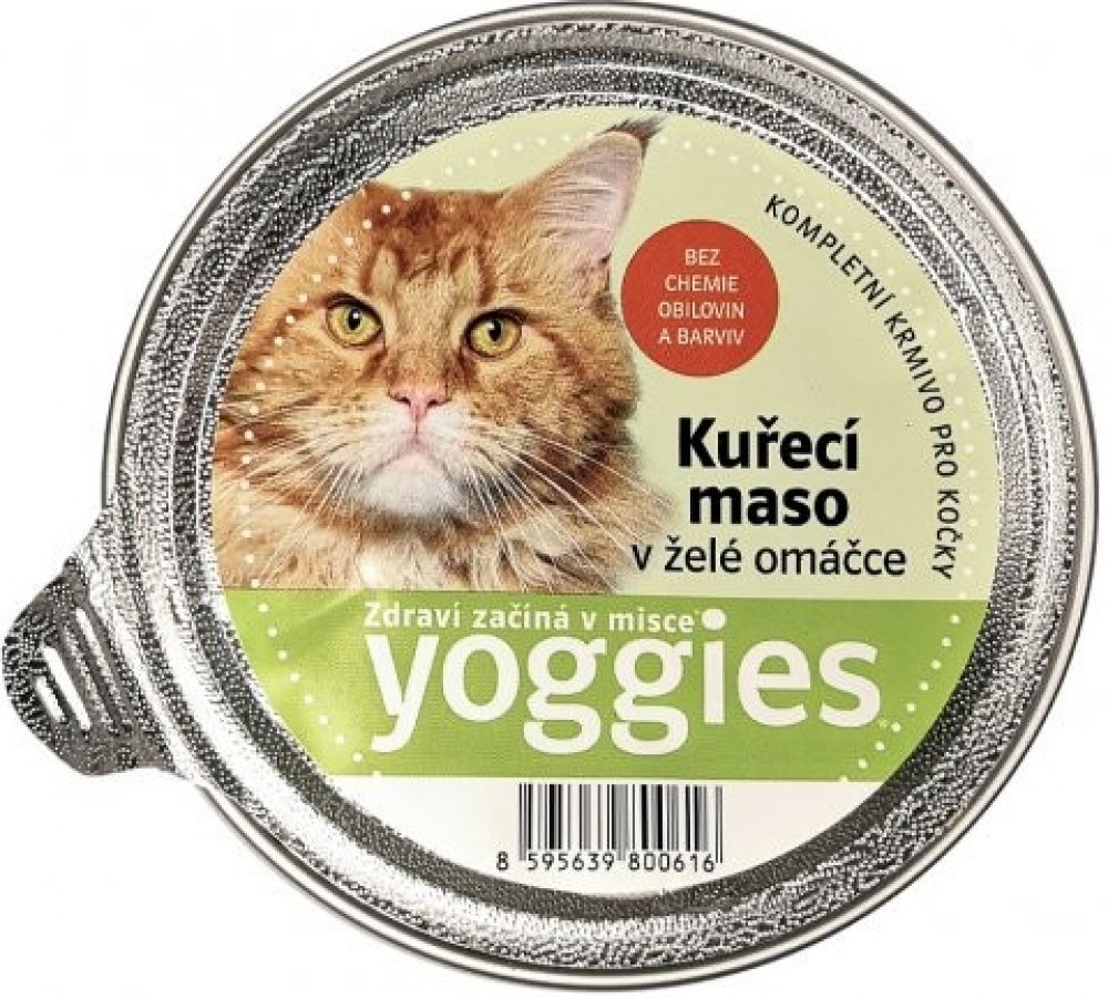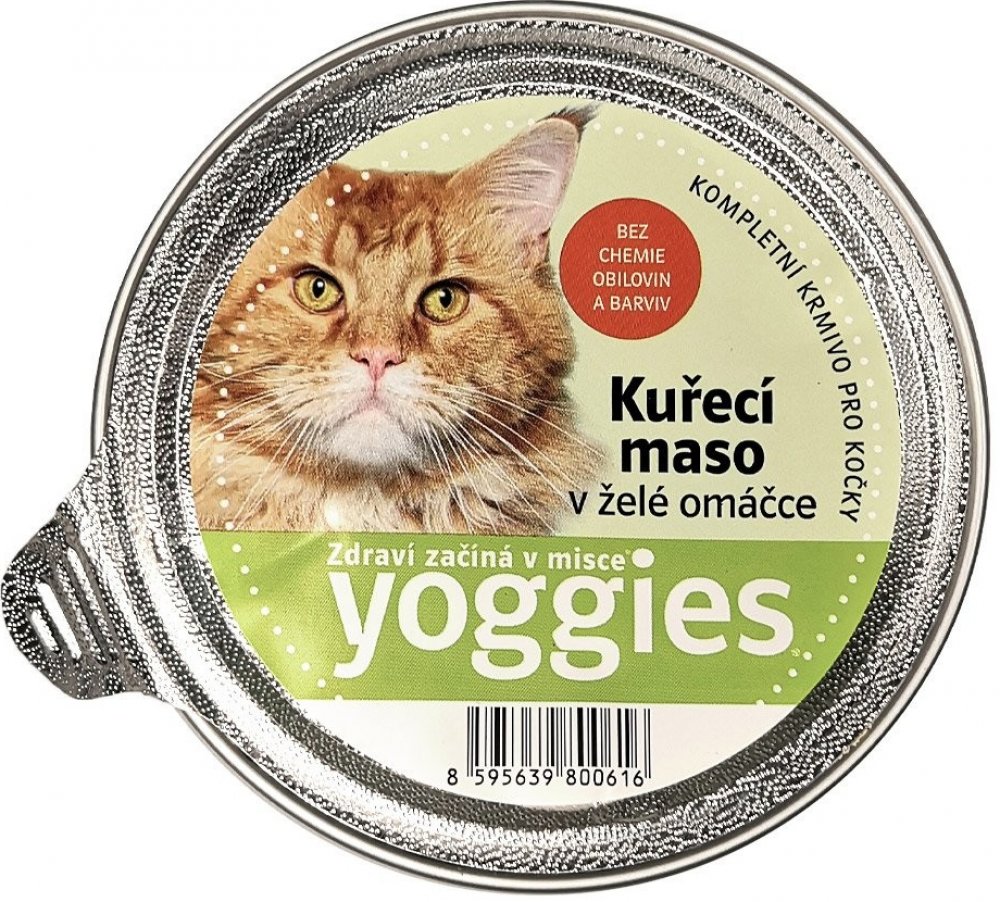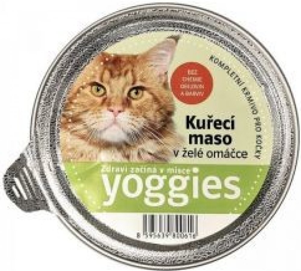 Yoggies mističky pro kočky se šťavnatým kuřecím masem a především lahodnou želé omáčkou se jistě stanou pochoutkou pro všechny dospělé kočky. Maso pochází z kvalitních Německých a Holandských chovů a želé omáčka je vyráběna z vývaru z těchto mas, kostí a kvalitní zeleniny. Tyto mističky a jejich obsah mohou být kompletním krmivem pro kočky, protože mají obsah nezbytných důležitých živin vč.např.am...