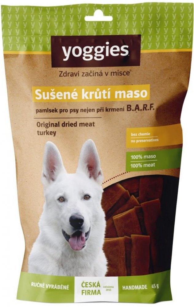 Yoggies Sušené krůtí maso pro psy proužky 45 g