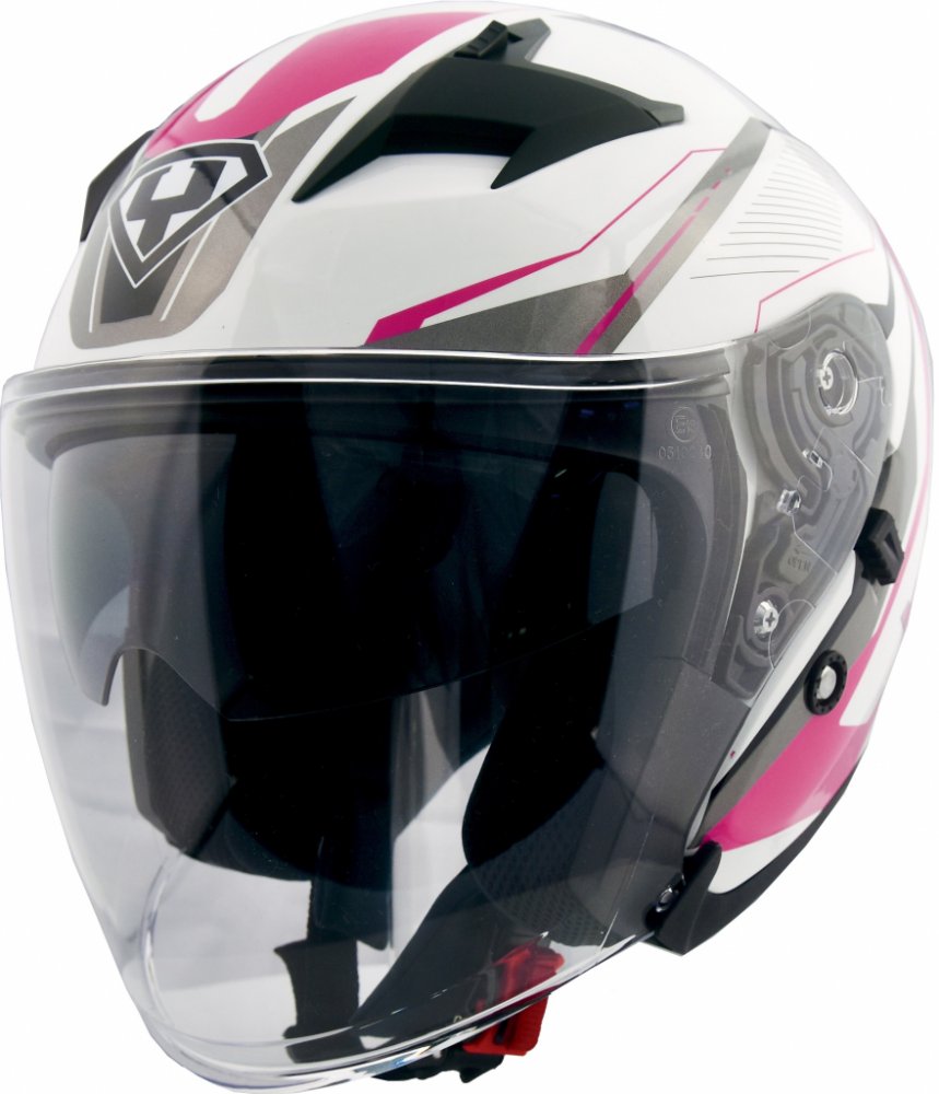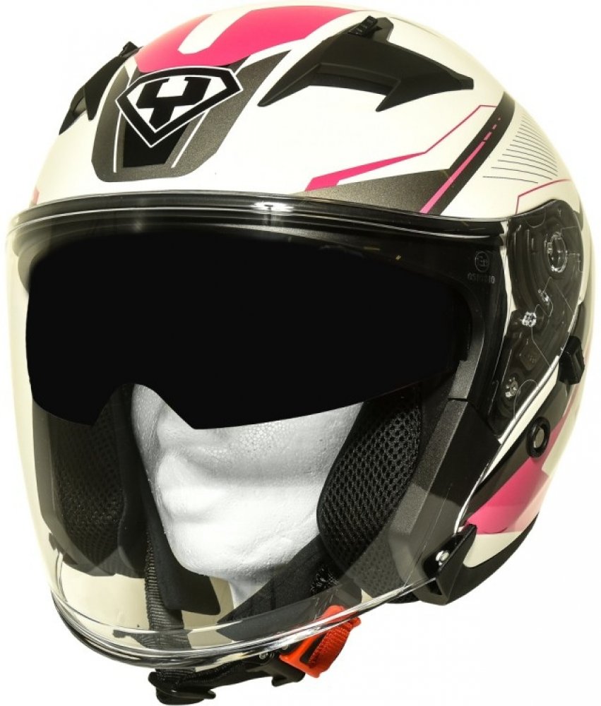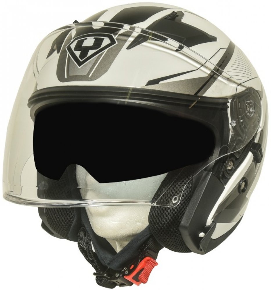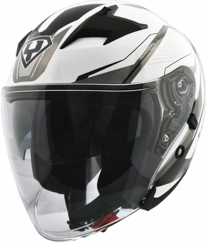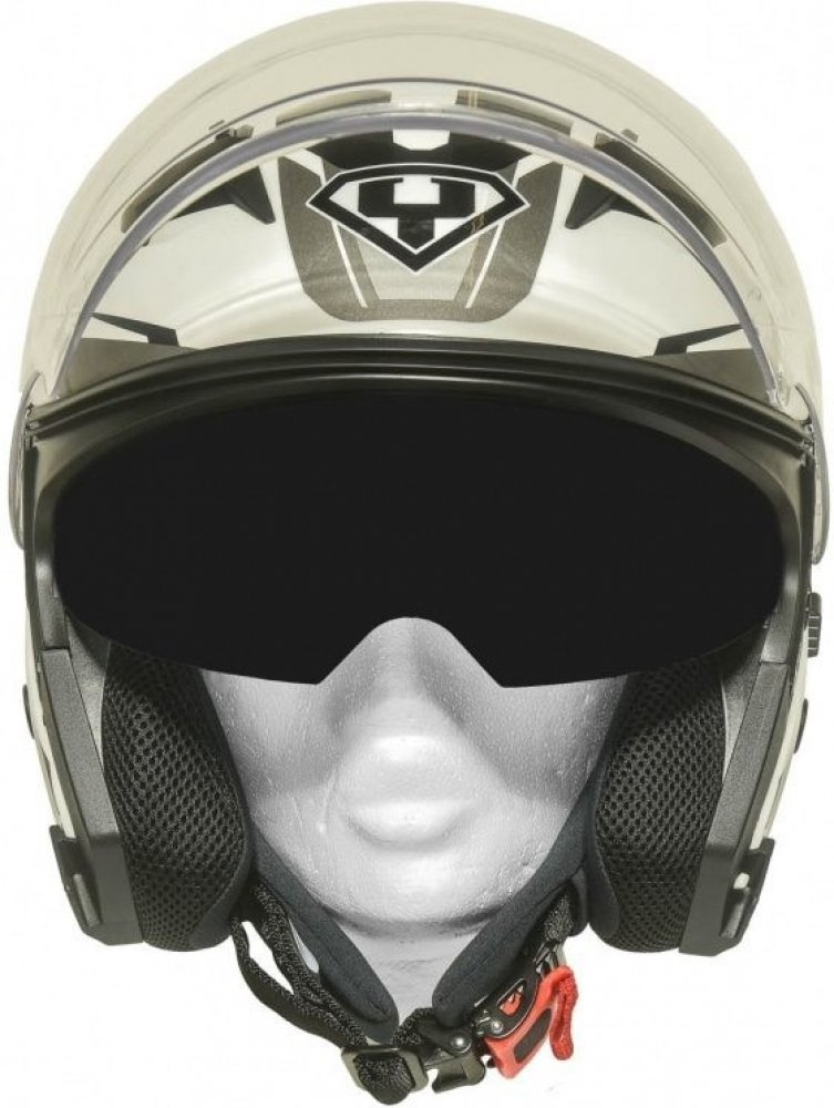 Značka Yohe se poprvé představuje českému trhu v roce 2018. Nyní představuje otevřenou vysoce kvalitní helmu s velkým plexi štítem a sluneční clonou v zajímavém designu. V bílé barvě se stříbrnými a černými designovými prvky.