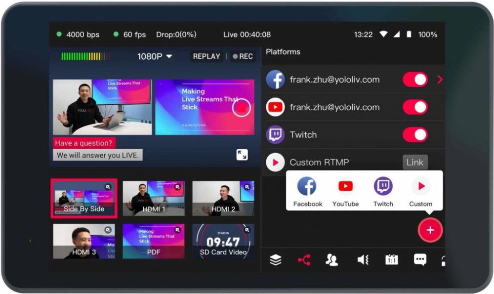 YoloBox Pro je přepínač videa, enkodér/streamer, monitor, rekordér a mixér zvuku v jednom. Díky vestavěné službě restreamingu, nativní podpoře integrace přímo s YouTube/Facebook/Twitch, přidání grafických překryvů (loga, dolní třetiny, obraz v obraze, výsledková tabule, rolovací titulky) a nabídce komentování streamů, side-by-side, rozdělení zobrazení a dalších funkcí. YoloBox Pro nabízí profesion...