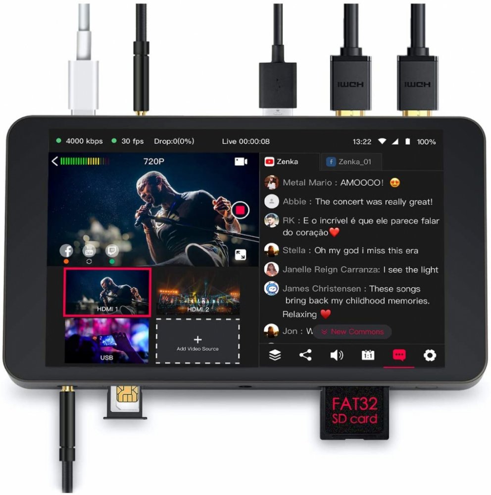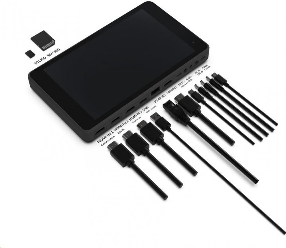 YoloBox Pro je přepínač videa, enkodér/streamer, monitor, rekordér a mixér zvuku v jednom. Díky vestavěné službě restreamingu, nativní podpoře integrace přímo s YouTube/Facebook/Twitch, přidání grafických překryvů (loga, dolní třetiny, obraz v obraze, výsledková tabule, rolovací titulky) a nabídce komentování streamů, side-by-side, rozdělení zobrazení a dalších funkcí. YoloBox Pro nabízí profesionální funkce a výpočetní výkon potřebný pro nejnáročnější živé přenosy. YoloBox Pro je 8 palců vysoký a váží 750 g, má 3 vstupy HDMI, 1 výstup HDMI, 1 plnohodnotný USBC, takže můžete přepínat až 8 zdrojů, včetně až čtyř fyzických místních kamer. Další dva předem nahrané video, uložené buď na interním paměťovém čipu, nebo z webového zdroje. Model Pro podporuje vstupní rozlišení 720p a 1080i/p a také streamy 540p, 720p a 1080p60 podle vašeho výběru s využitím kodeku H.264. Díky výstupu HDMI můžete svůj stream zobrazit lokálně na zařízení HDMI. YoloBox Pro vám nabízí velké dotykové rozhraní LCD pro snadné streamování a ovládání, které demonstruje streamovaný obraz i vstupní streamy; displej LCD poskytuje také ovládací rozhraní, které umožňuje přepínat zdroje informací jednoduchým dotykem. Má také linkový audio vstup a samostatný sluchátkový audio výstup. Pomocí vestavěného slotu pro karty SD můžete stream nahrávat přímo ve formátu .mp4 na volitelnou kartu SD o velikosti až 128 GB. Linkový vstup umožňuje připojení k syntezátoru a mikrofonní vstup lze připojit k mikrofonu pro nahrávání. Hlavní funkce: - Slouží k nahrávání videa a záznamu hudby z mikrofonu: 3 x HDMI, 1 x vstup USB, 1 x karta SD, 1 x PDF; 1 x výstup HDMI; 1 x karta SIM; Mic-in a Line-in; plnohodnotný USBC Živé přepínání až 8 zdrojů Přímá integrace s YouTube/Facebook/RTMP(s) Vestavěné simultánní streamování Streamování přes Ethernet, WLAN, LTE 4G Import obrázků/videí z karty SD Přidávání log/vodoznaků/rolujících titulků do streamu Funkce překryvných komentářů ke streamu Přidávání a úpravy přizpůsobitelné výsledkové tabule, integrované spodní třetiny Lokální načtení PDF jako dalšího zdroje Interní nahrávání na SD kartu Výdrž baterie až 4,5 hodiny