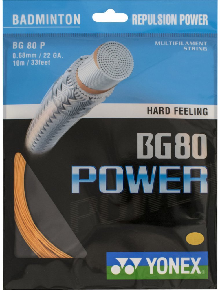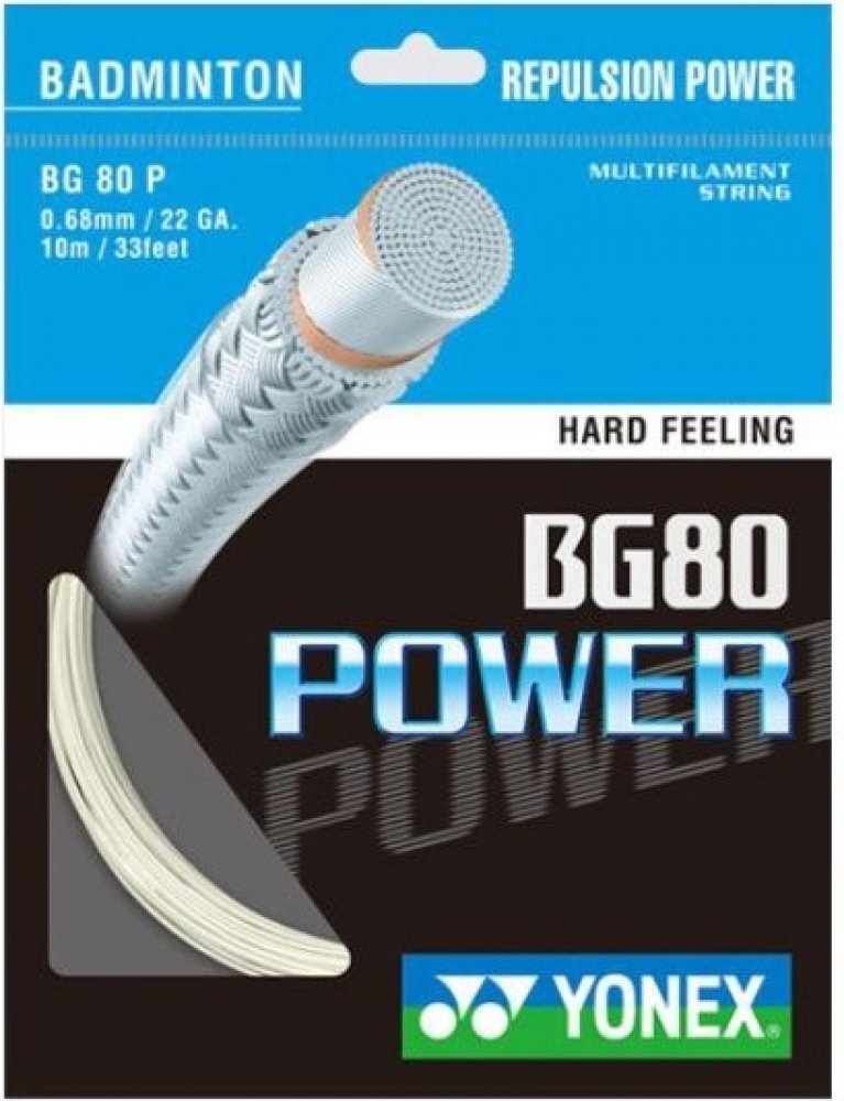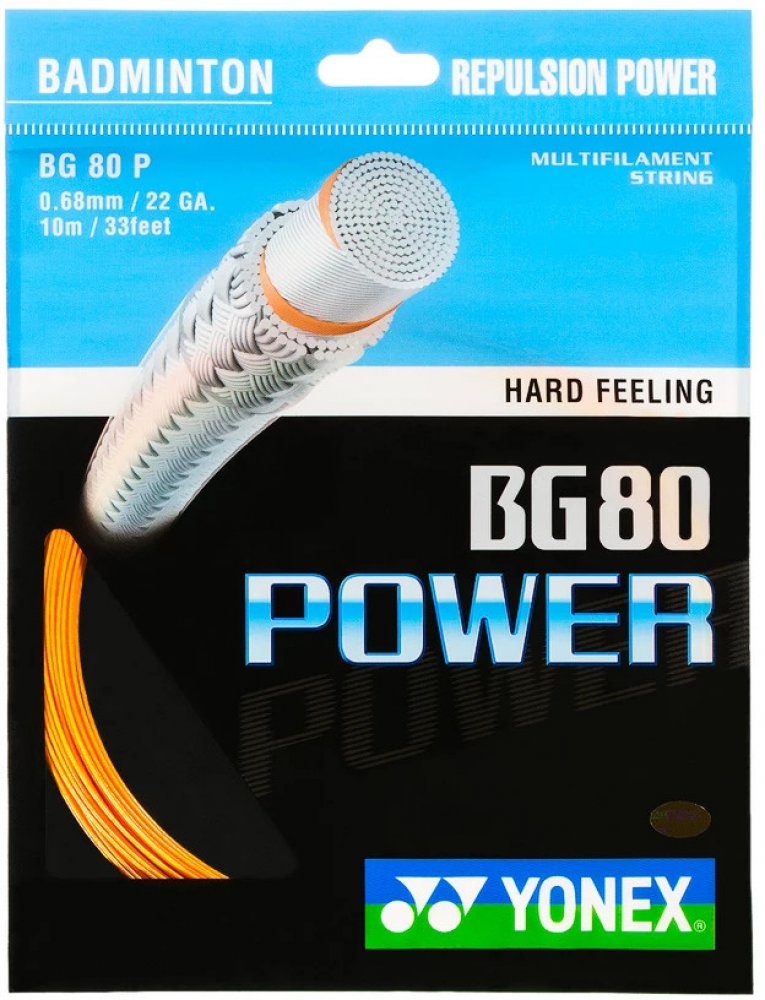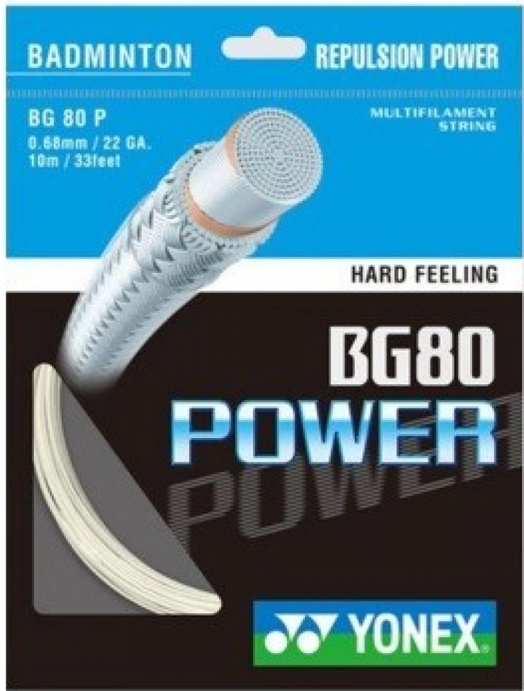 Výplet s průměrem 0.68 mm je multifilamentní přičemž jádro výpletu Yonex BG 80 Power je pokryto vrstvou vektranového vlákna, což zvyšuje repulsní energii a dodává výpletu Yonex BG 80 Power obrovskou sílu především do útočných úderů.