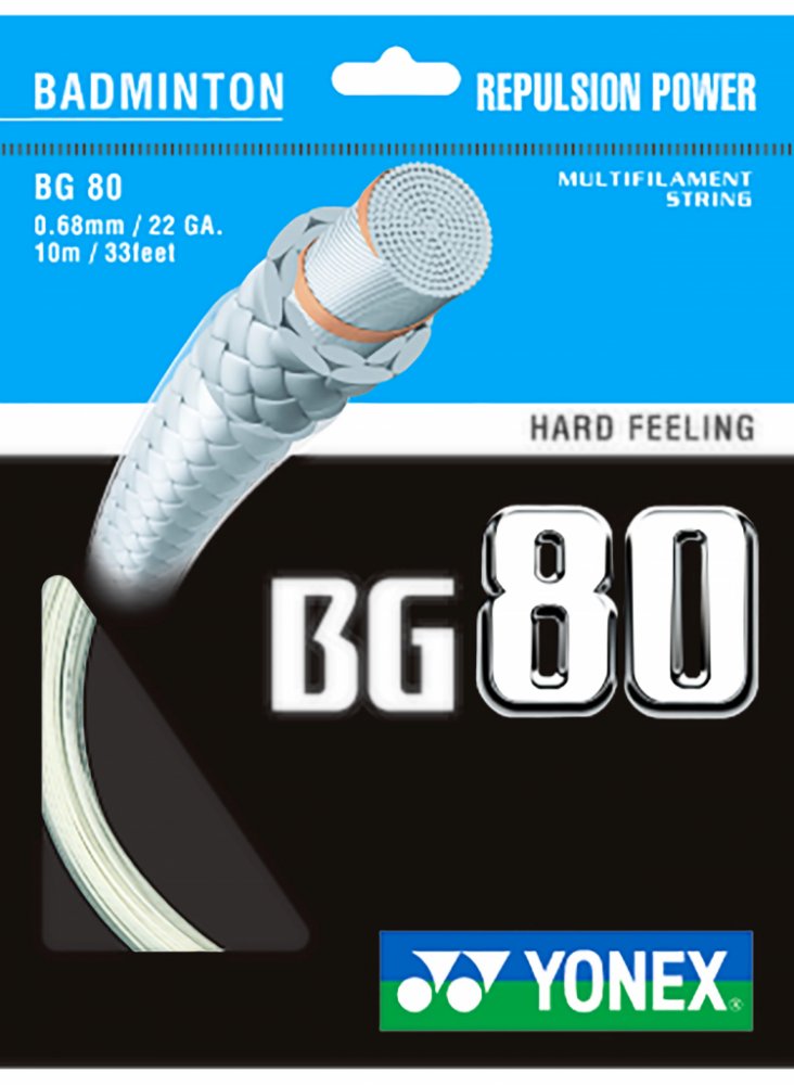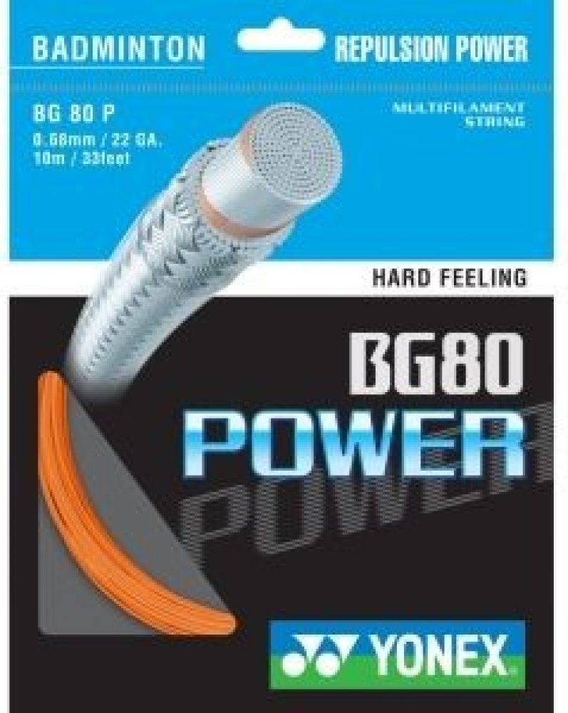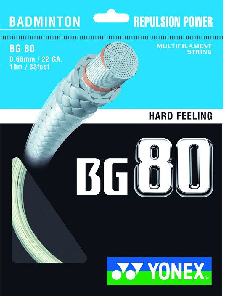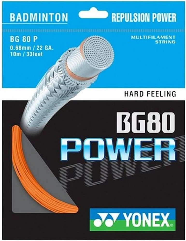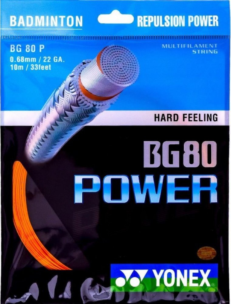 Výplet s průměrem 0.68 mm je multifilamentní přičemž jádro výpletu Yonex BG 80 Power je pokryto vrstvou vektranového vlákna, což zvyšuje repulsní energii a dodává výpletu Yonex BG 80 Power obrovskou sílu především do útočných úderů.