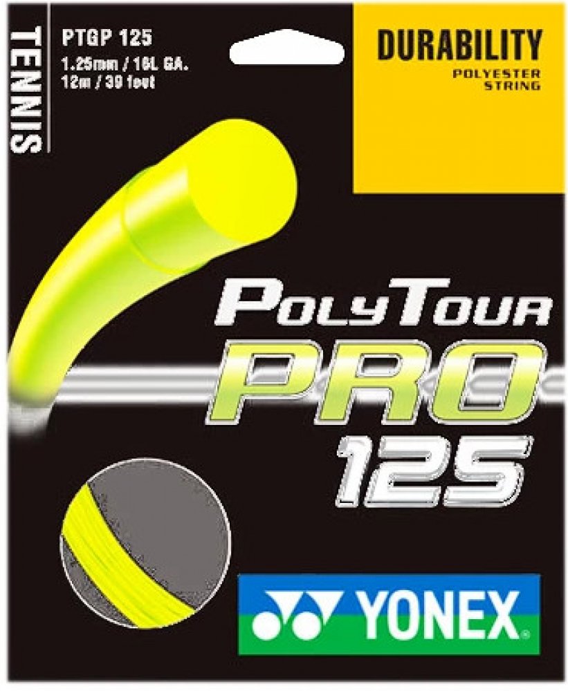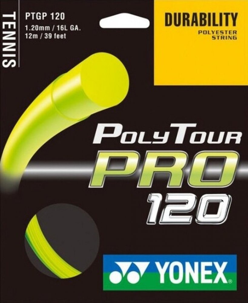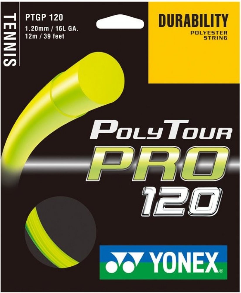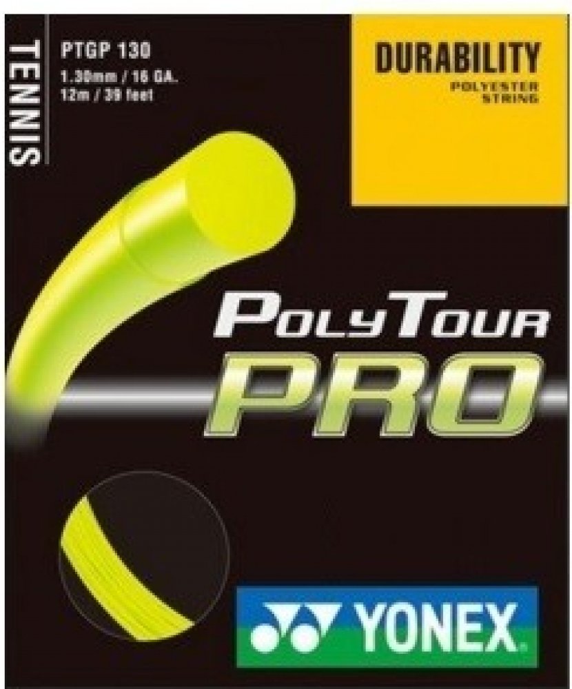 Tenisový výplet Yonex POLYTOUR Pro 12m žlutý POLYTOUR polyesterový monofilamentní výplet přesvědčí hráče především dlouhou trvanlivostí. Má monofilamentní jádro s polymer-polyesterovou charakteristikou. Jejich vývoj ovlivnili špičkoví profesionální hráči, kteří jej nyní s oblibou používají. Tato trvanlivá polyesterová struna přináší hráčům razanci při dobré kontrole svých úderů. Nejprodávanější výplet firmy Yonex Materiál: monofil polyester Barva: žlutá 12m set je odmotaný z originální role