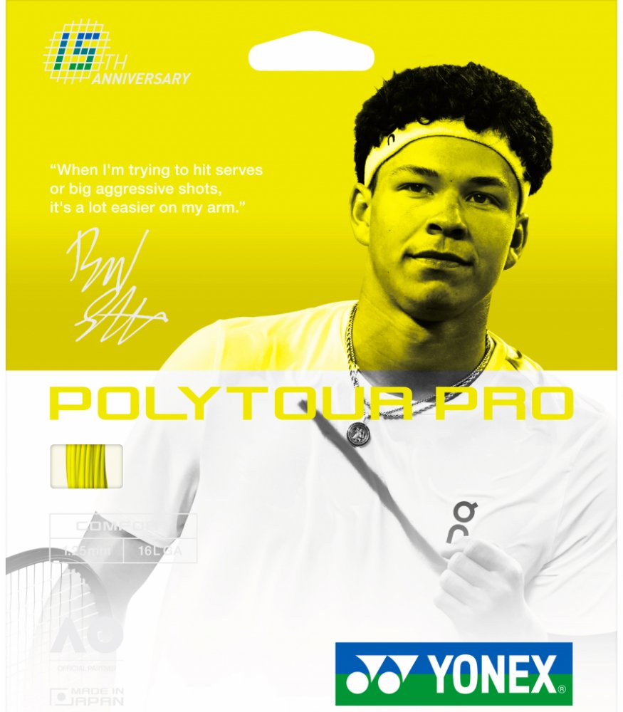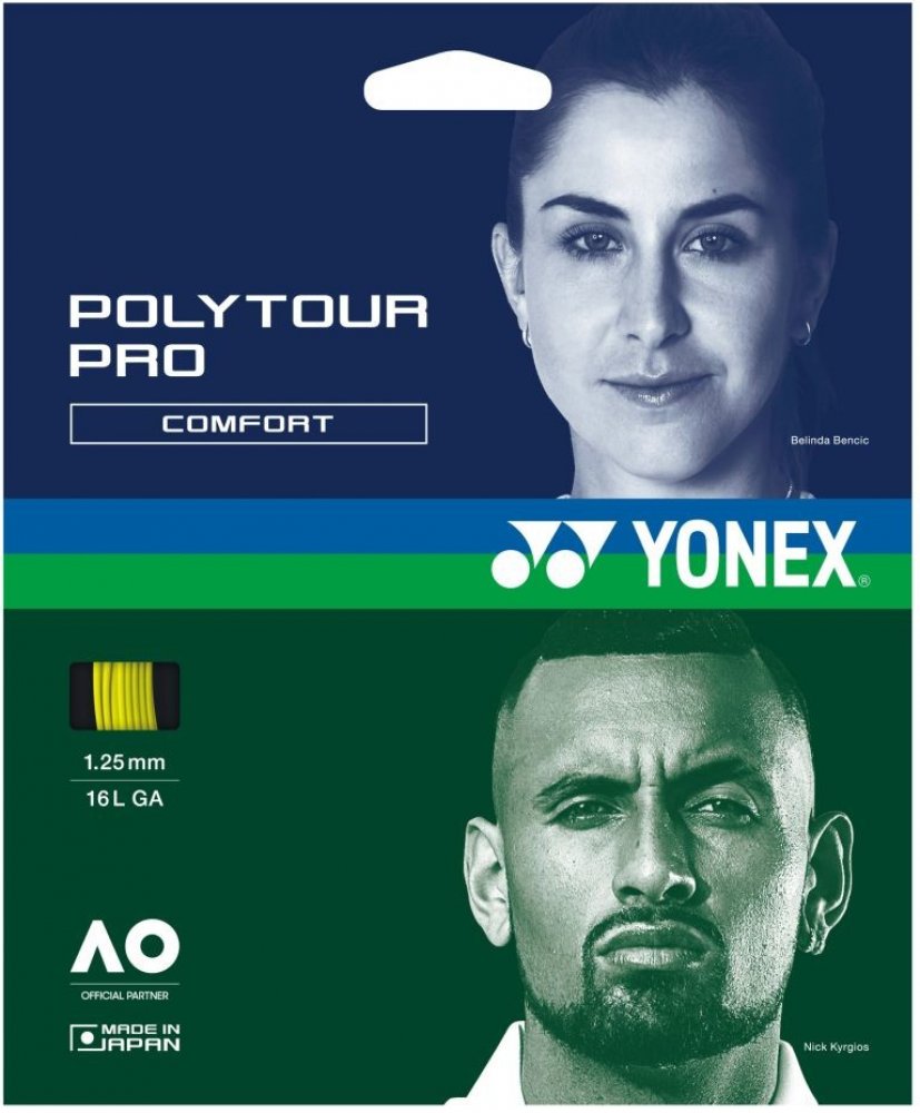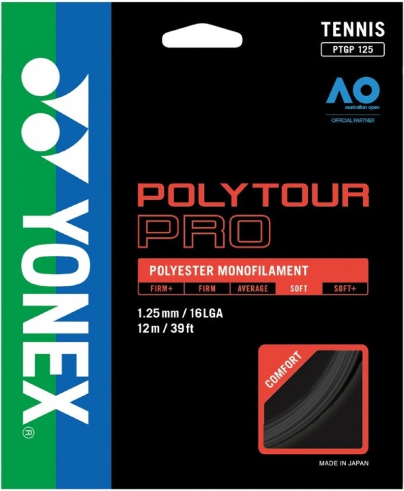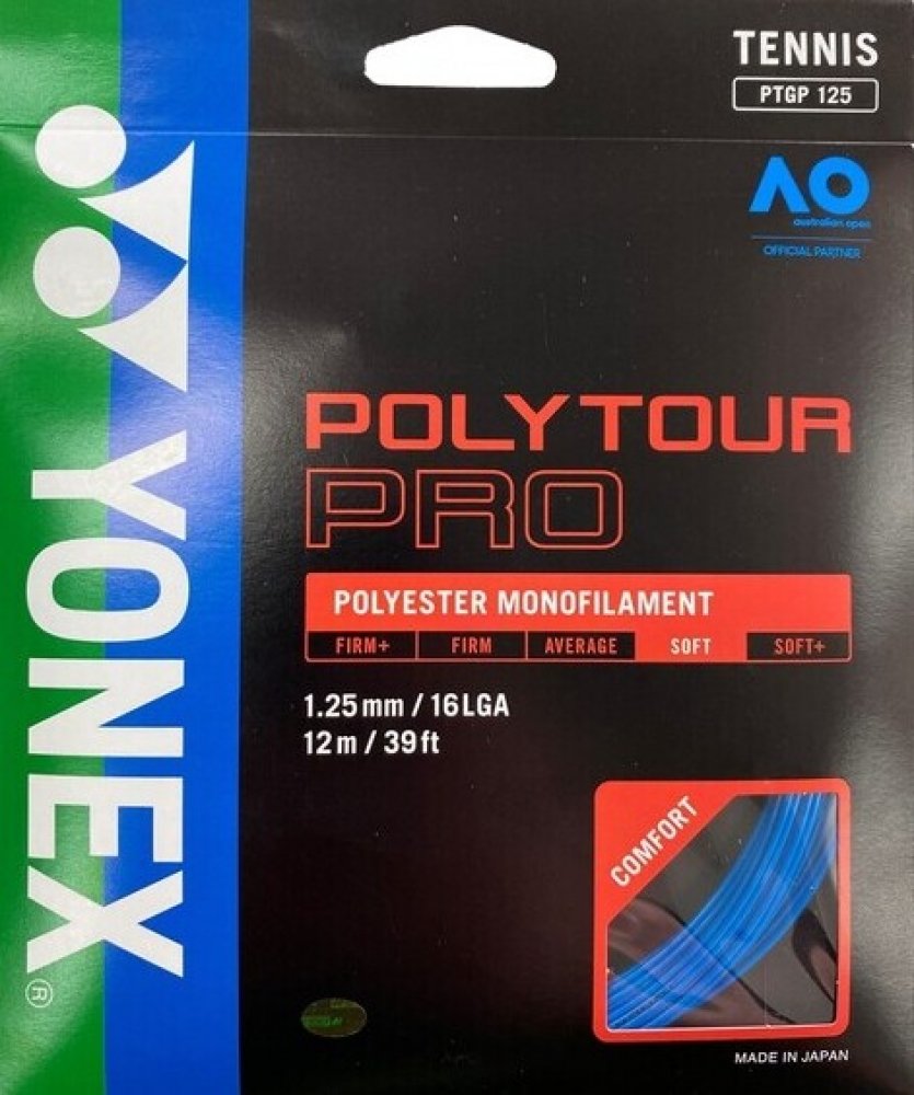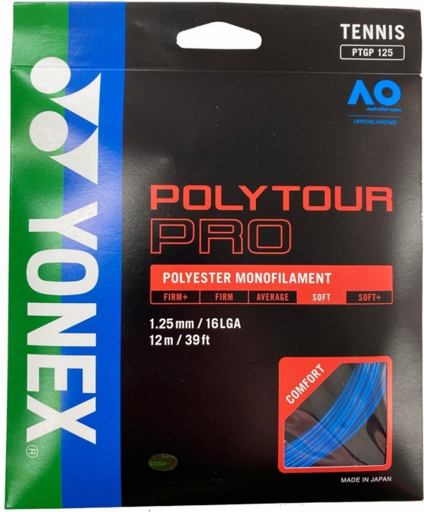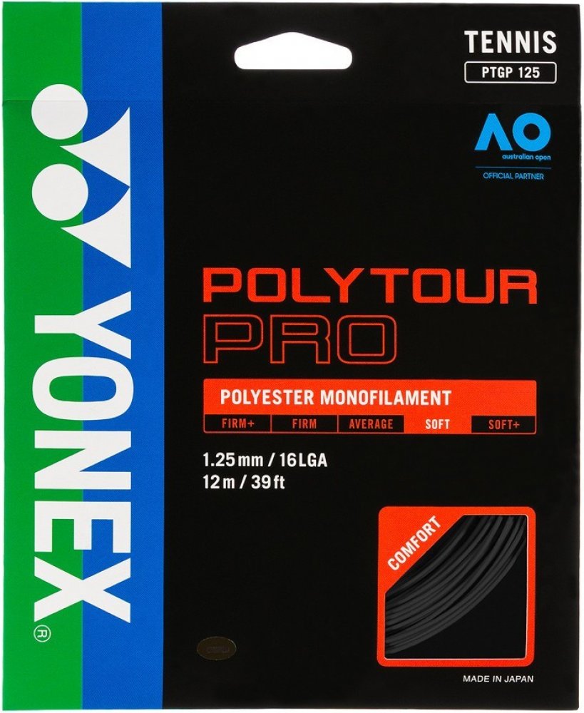 Tenisový výplet Poly Tour Pro 125 je novinkou firmy Yonex pro rok 2011. Tento polyesterový monofilamentní výplet vyniká svojí dlouhou trvanlivostí. Má monofilamentní jádro s polymer-polyesterovou charakteristikou. Na jeho vývoji se podíleli špičkoví profesionální hráči, kteří jej nyní s oblibou používají. Tato trvanlivá polyesterová struna přináší hráčům razanci při dobré kontrole svých úderů. Náš bestseller.