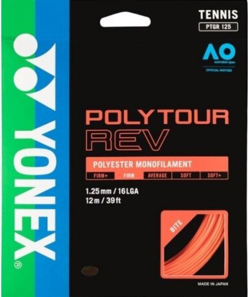 Tenisový výplet Yonex Poly Tour Rev (12 m) - bílý Nejnovější série výpletů Yonex, co-polyester s velmi vysokou kontrolou a silou úderu. Osmiboký výplet zesílený systémem SIF (Silicone Oil Infusion) poskytuje mimořádnou odolnost a snadnost hraní s rotací. Je také velmi pohodlný, nemá negativní vliv na lokty, zápěstí nebo ramena. Je ideální volbou pro hráče hledající dobrý cit a bezchybnou sílu.