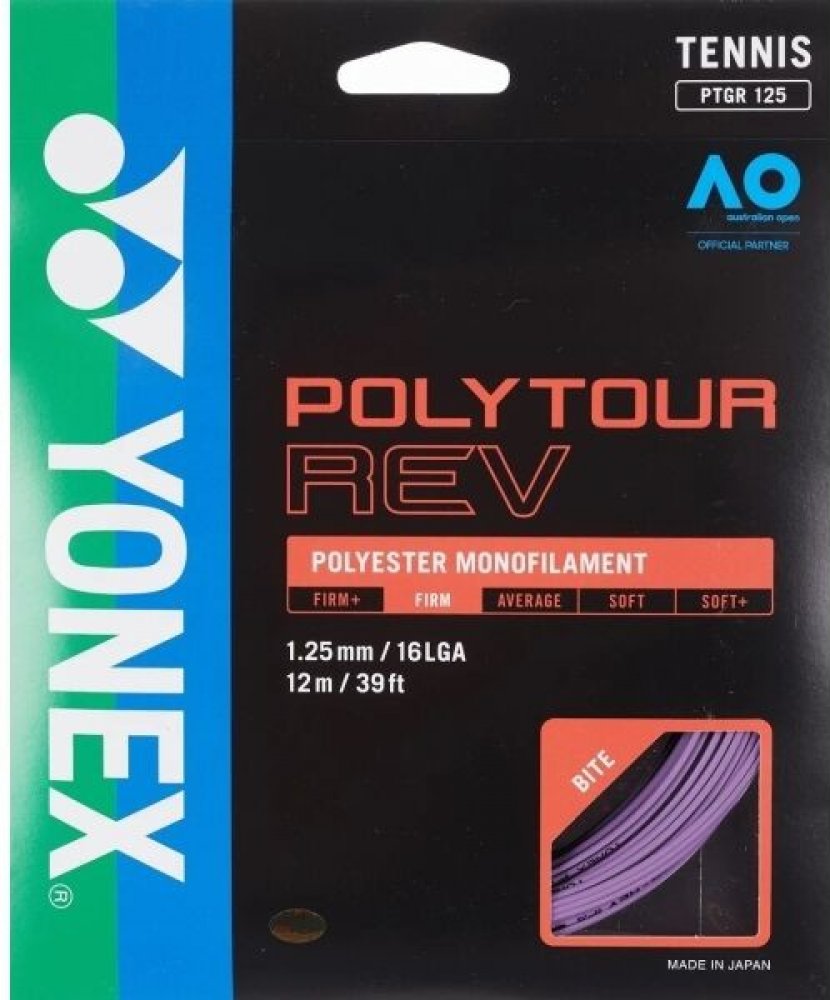 Tenisový výplet Yonex Poly Tour Rev (12 m) - fialový Nejnovější série výpletů Yonex, co-polyester s velmi vysokou kontrolou a silou úderu. Osmiboký výplet zesílený systémem SIF (Silicone Oil Infusion) poskytující mimořádnou odolnost a snadnost hraní s rotací. Je také velmi pohodlný, nemá negativní vliv na lokty, zápěstí nebo ramena. Je ideální volbou pro hráče hledající dobrý cit a bezchybnou sílu...